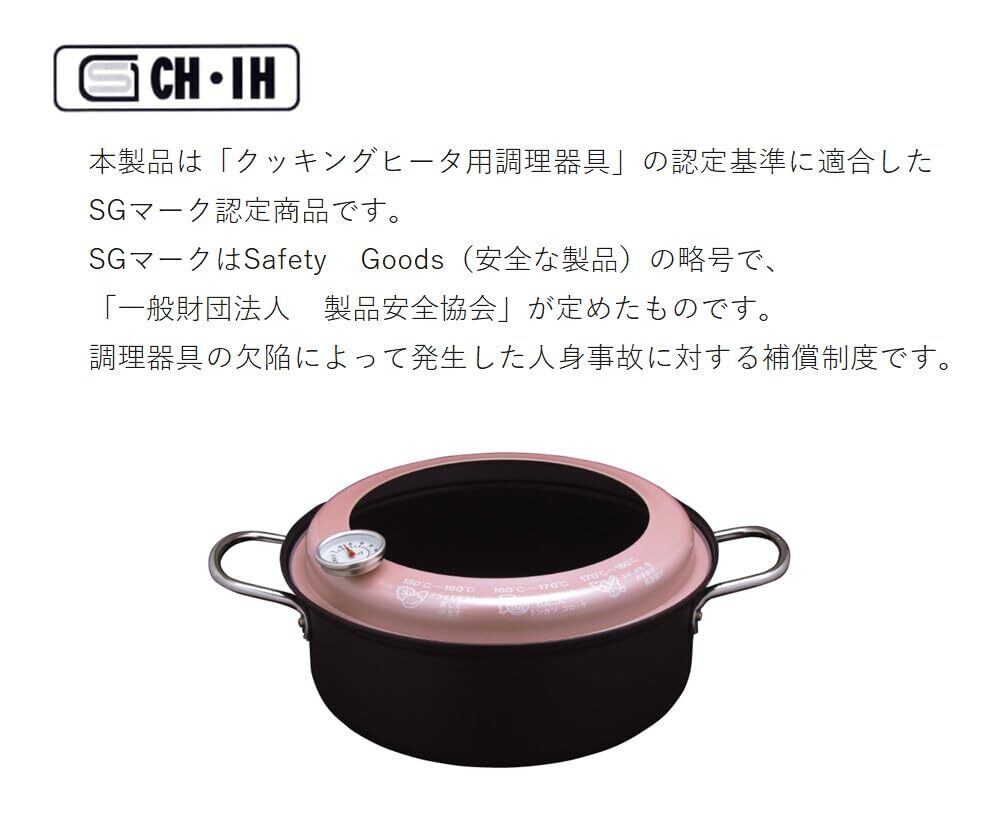 天ぷら鍋 ・IH、ガス火対応 ・充分な機能の備わった天ぷら鍋 ・揚げ油の温度がひと目でわかる温度計付き ・揚げ物がカラッと揚がる鉄製 ・フードには揚げ油の目安温度を表示