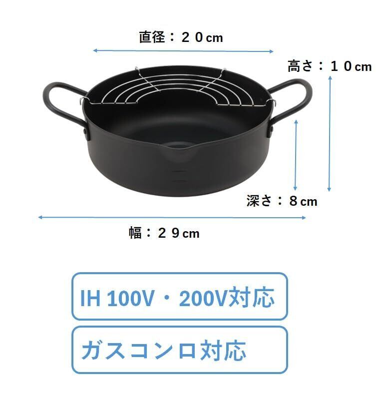 鉄製の天ぷら鍋です。IHクッキングヒーター(100V・200V)、ガスコンロで使用できます。