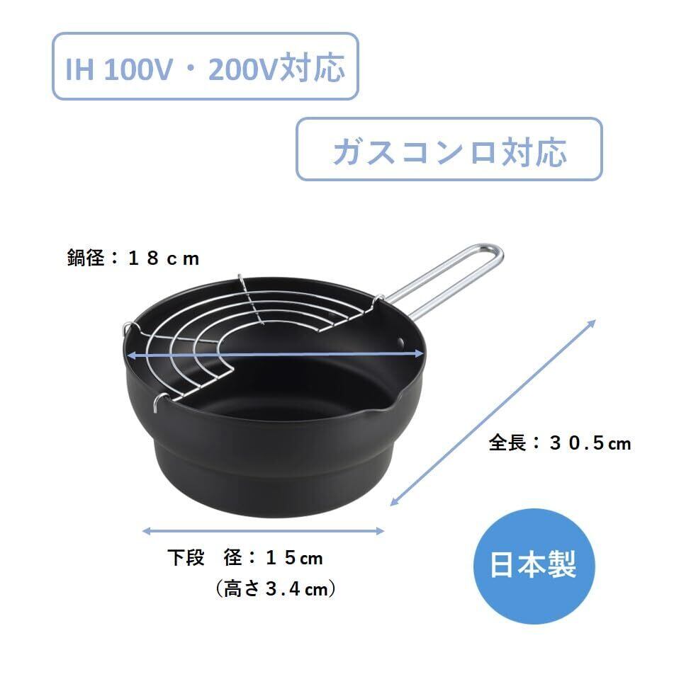 丸山 段付き天ぷら鍋18cm(アミ付)揚げ物 揚げ鍋 お弁当 少量 天麩羅 日本製 C27186 油鍋 ih ガス