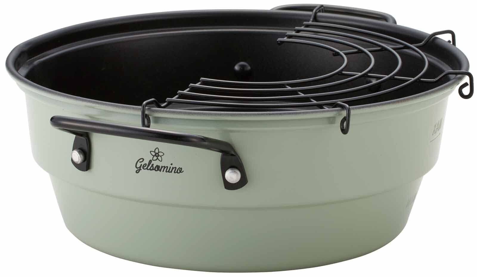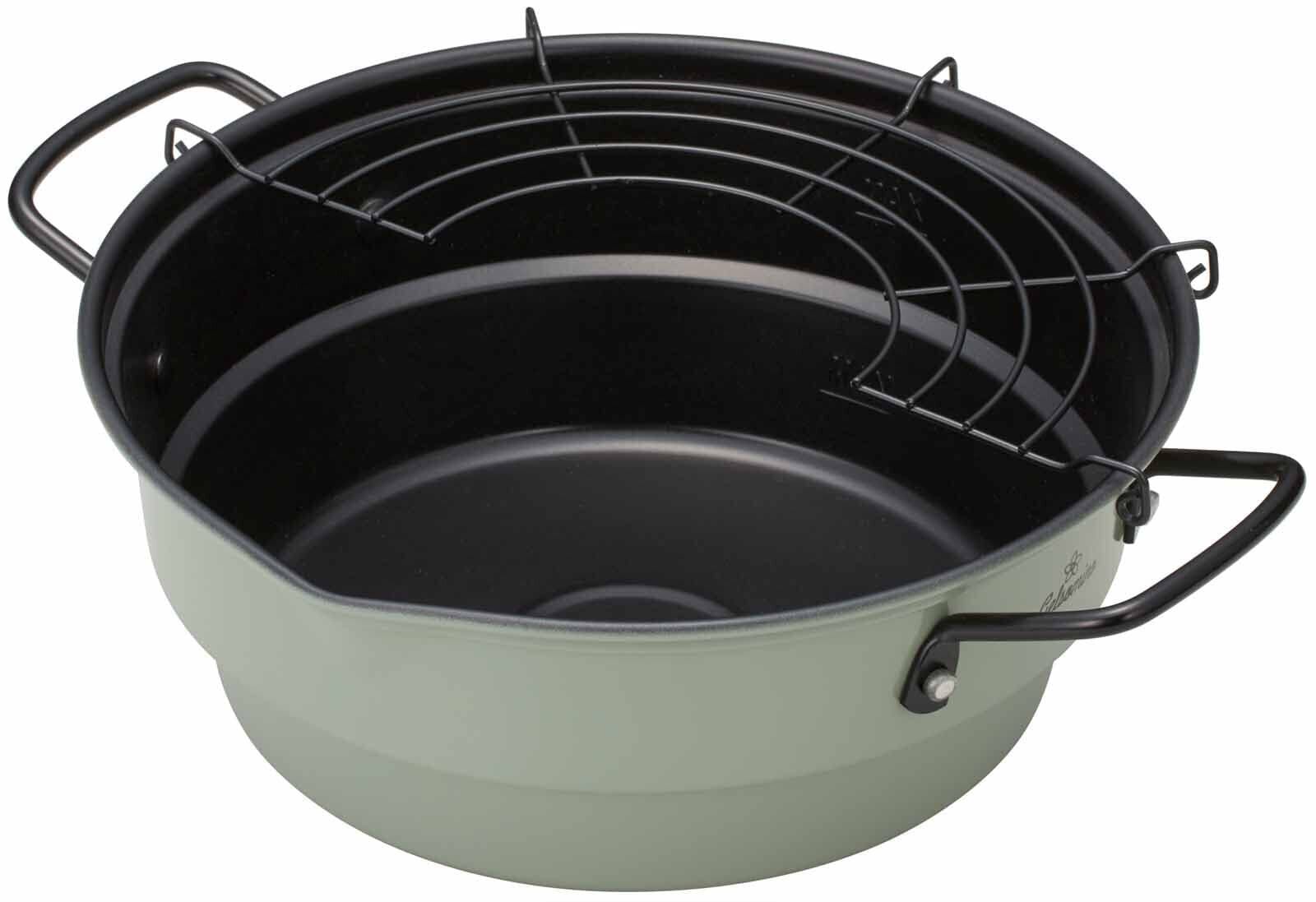 万年 mannen gelsomino 天ぷら鍋 揚げアミ付き 23cm IH対応 段付き構造 注ぎ口付き シリコンコート加工 油切れの良い濾しアミ グリーン GEL-1