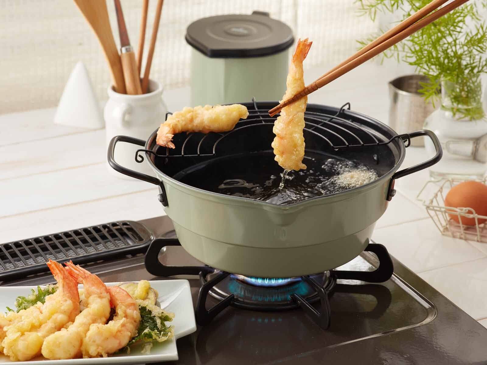 素材・材質:本体・取っ手・揚げアミ/鉄(シリコンコート加工)