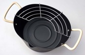 材質:本体/鉄(シリコーン樹脂塗装)、取っ手/鉄(焼付塗装)、アミ/鉄(クロムめっき)
