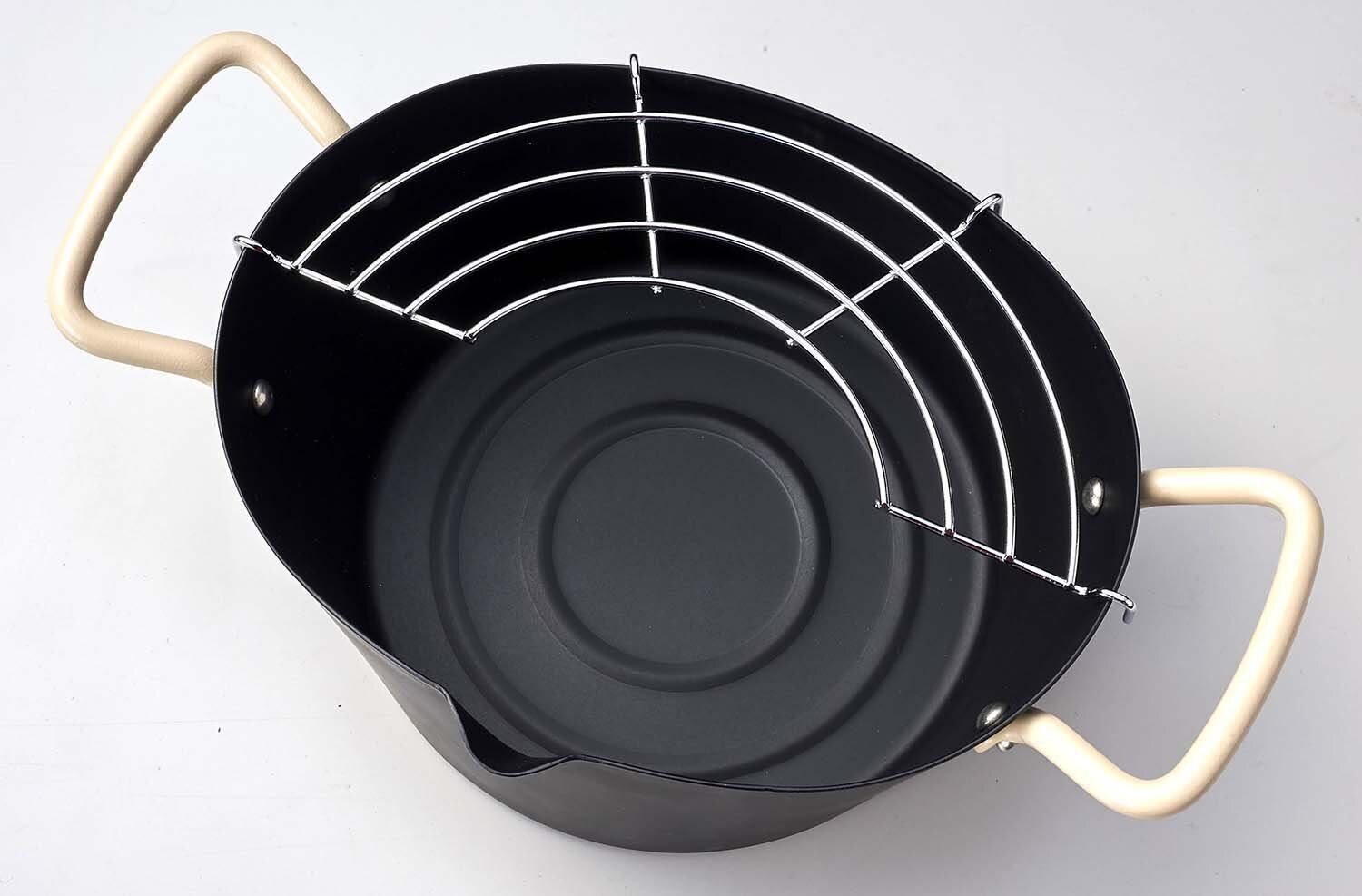 鍋のサイズは使い勝手が良く、油がすぐに温まるため、短時間での調理が可能です。鉄製の特性により、外はカリッと、中はジューシーに仕上がり、揚げ物だけでなく様々な料理に対応しています。毎日の食卓をより一層豊かにしてくれます。