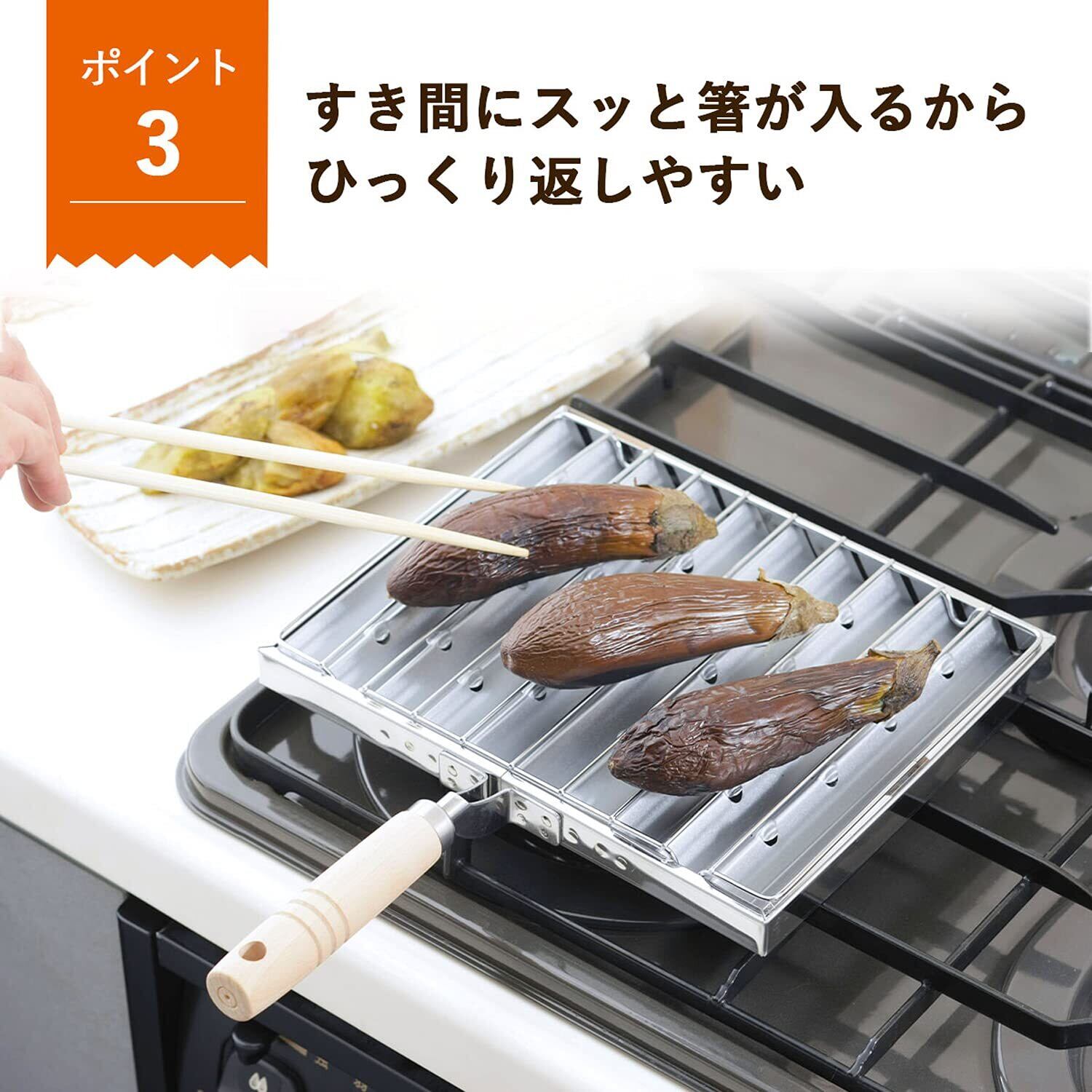 箸が入れやすく返しが楽。モチもおいしく焼ける