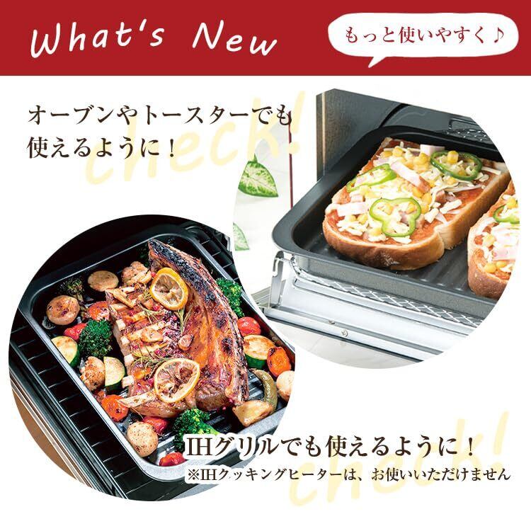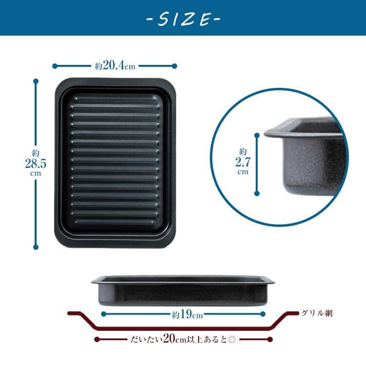 28.5×20.4×2.7cmの深型設計により、食材をしっかりと収容でき、調理時の飛び跳ねを抑えます。波形デザインの焼き面が均一な焼き上がりを実現し、肉や魚の旨味を引き出してくれます。直火、オーブン、トースターのいずれにも対応し、幅広い調理が可能です。