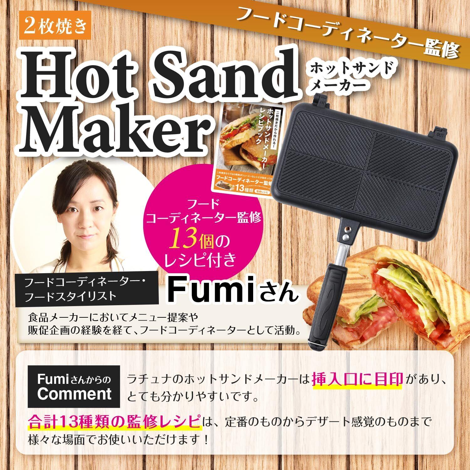 【フードコーディネーター監修レシピ付き】フードコーディネーター監修のLatuna限定13種のレシピと作り方動画付き。 様々なホットサンドが作れて飽きることなくご使用いただけます。また、使い方や作り方に困ったら、特別特典の動画がついているので届いたその日からご使用いただけます。 わずか6分で焼き上がり、おかず・おつまみ・スイーツまで様々な料理が作れちゃいます。調理時間の短縮にもなるので、お子様のおやつや忙しい毎日にサッと調理。