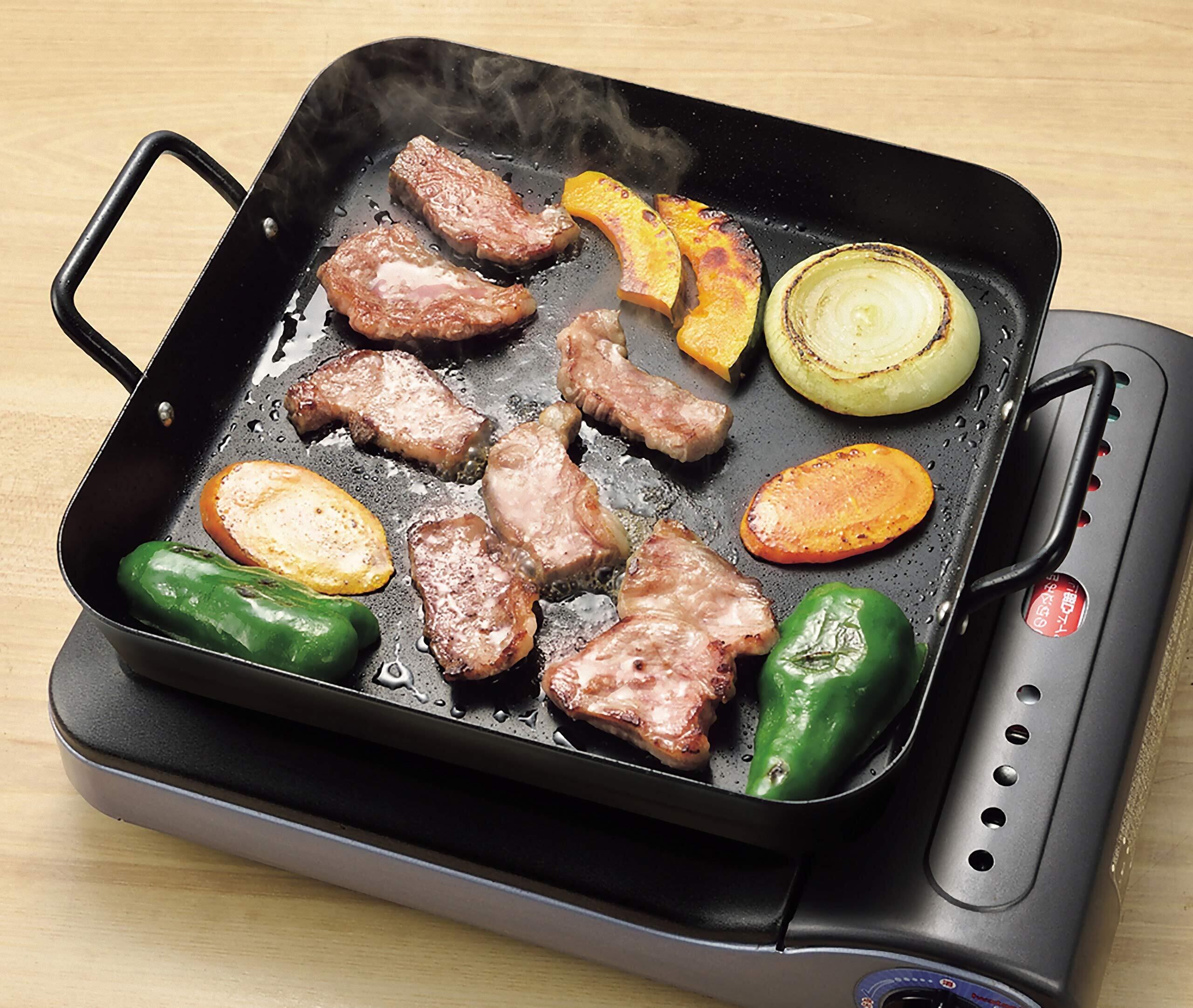 25×25cmのサイズは、家庭用のコンロにぴったりフィットし、持ち手もついているため、安全に扱えます。軽量で持ち運びも簡単なので、外でも手軽に使用できます。また、焦げ付きにくいので、調理後のお手入れもスムーズです。