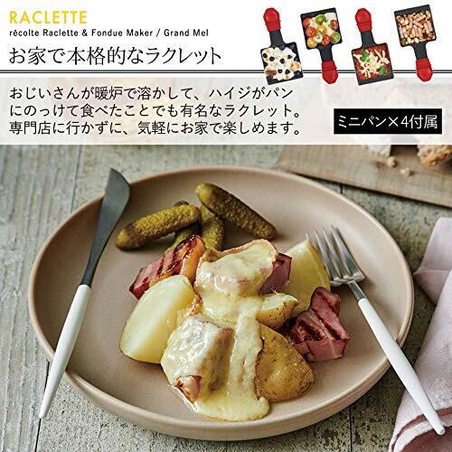 recolte レコルト ラクレットアンドフォンデュメーカー グランメルト ラクレットグリル チーズフォンデュ鍋 チョコフォンデュ 電気 ホットプレート アヒージョ 焼肉 ミニパン・ココット付 レッド RRF-2(R)
