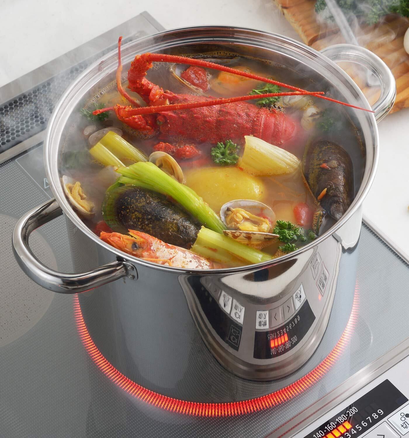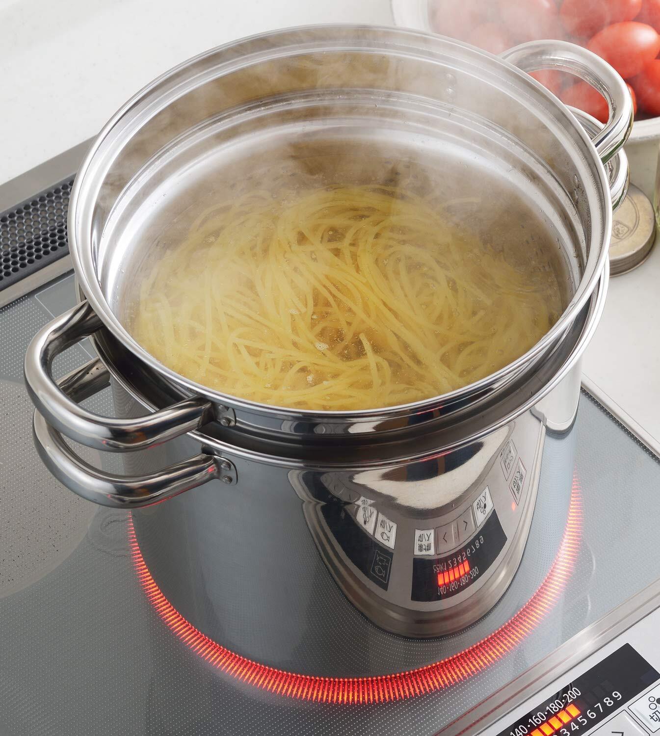 満水容量:約7.3L、対応熱源:ガスコンロ・電磁調理器 (IH 100V・200V)・シーズヒーター・ハロゲンヒーター・エンクロヒーター・ラジエントヒーター