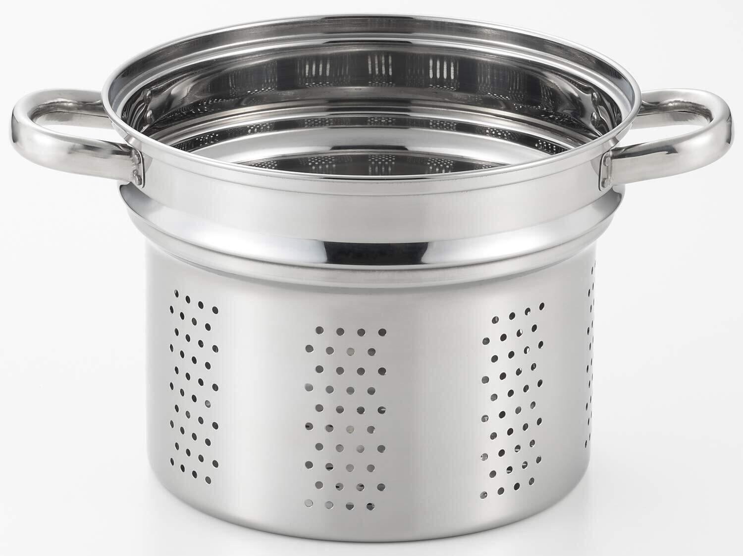ヨシカワ パスタポット 両手鍋 22cm 7.3L ガラス蓋付き 湯切り付き ステンレス IH・ガス火対応 トスカーナ SJ3120