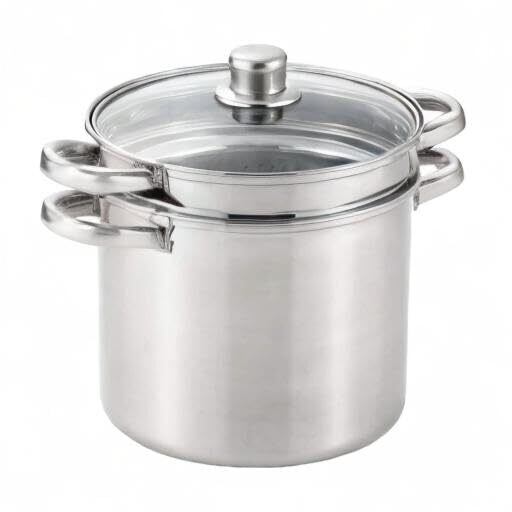 素材・材質:本体/18-0ステンレス (底厚0.7mm)、中子/18-0ステンレス、蓋/全面物理強化ガラス、ハンドル・ツマミ/18-8ステンレス