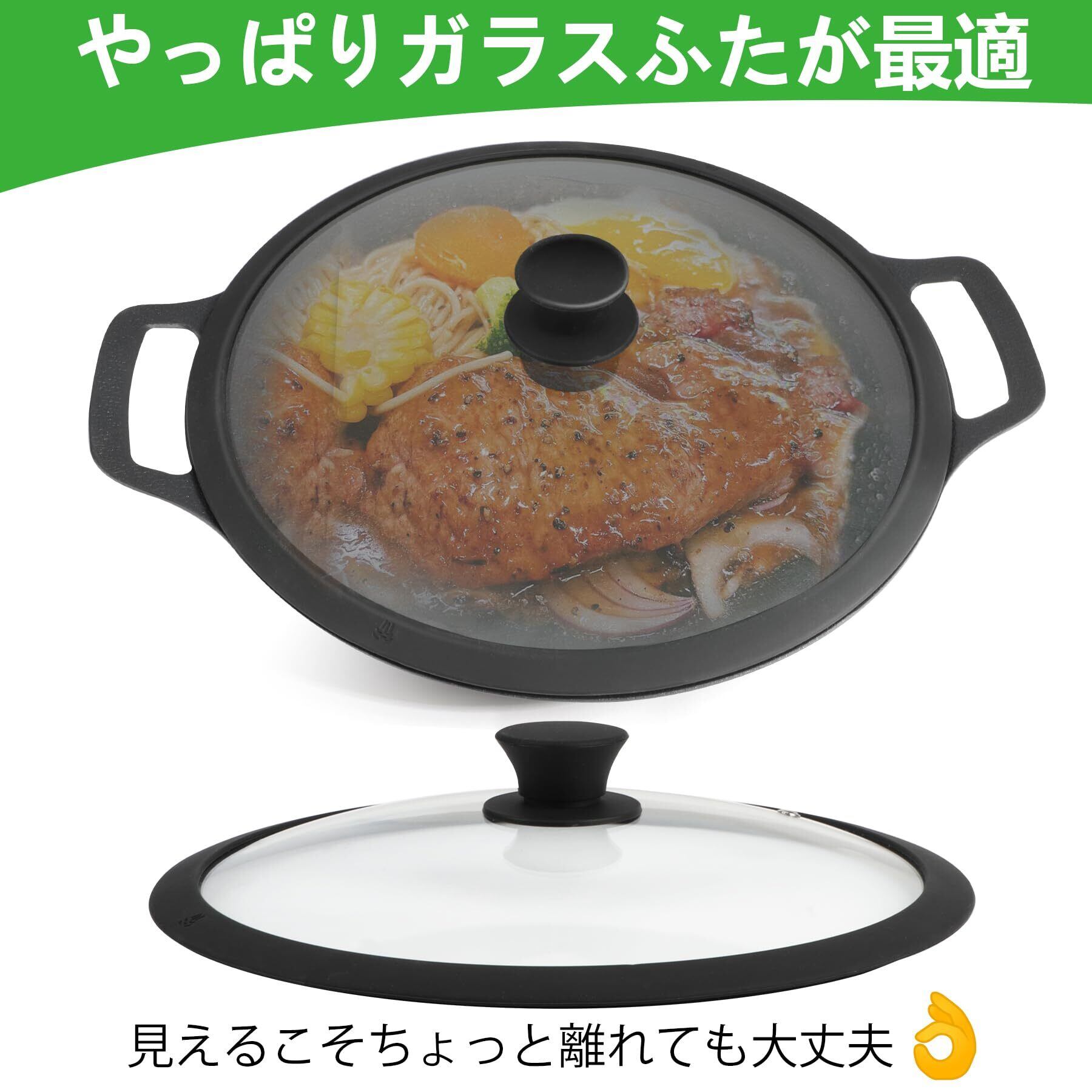 【33cmの多用途ガラス蒸し蓋で調理をサポート!】