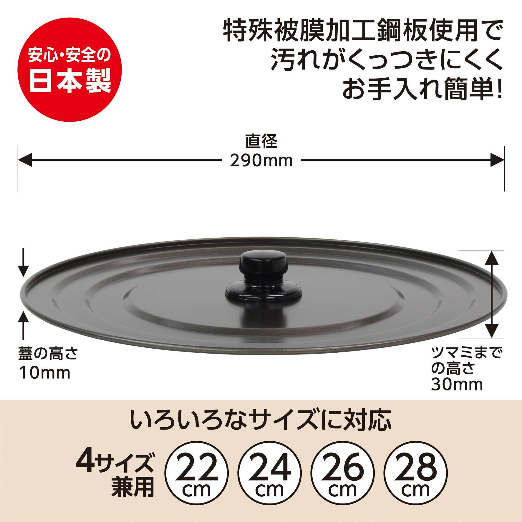 竹原製缶 フライパン 蓋 日本製 軽くて場所を取らない 22・24・26・28cm 対応 軽い フッ素樹脂塗膜 幅広いサイズに対応 フライパン カバー