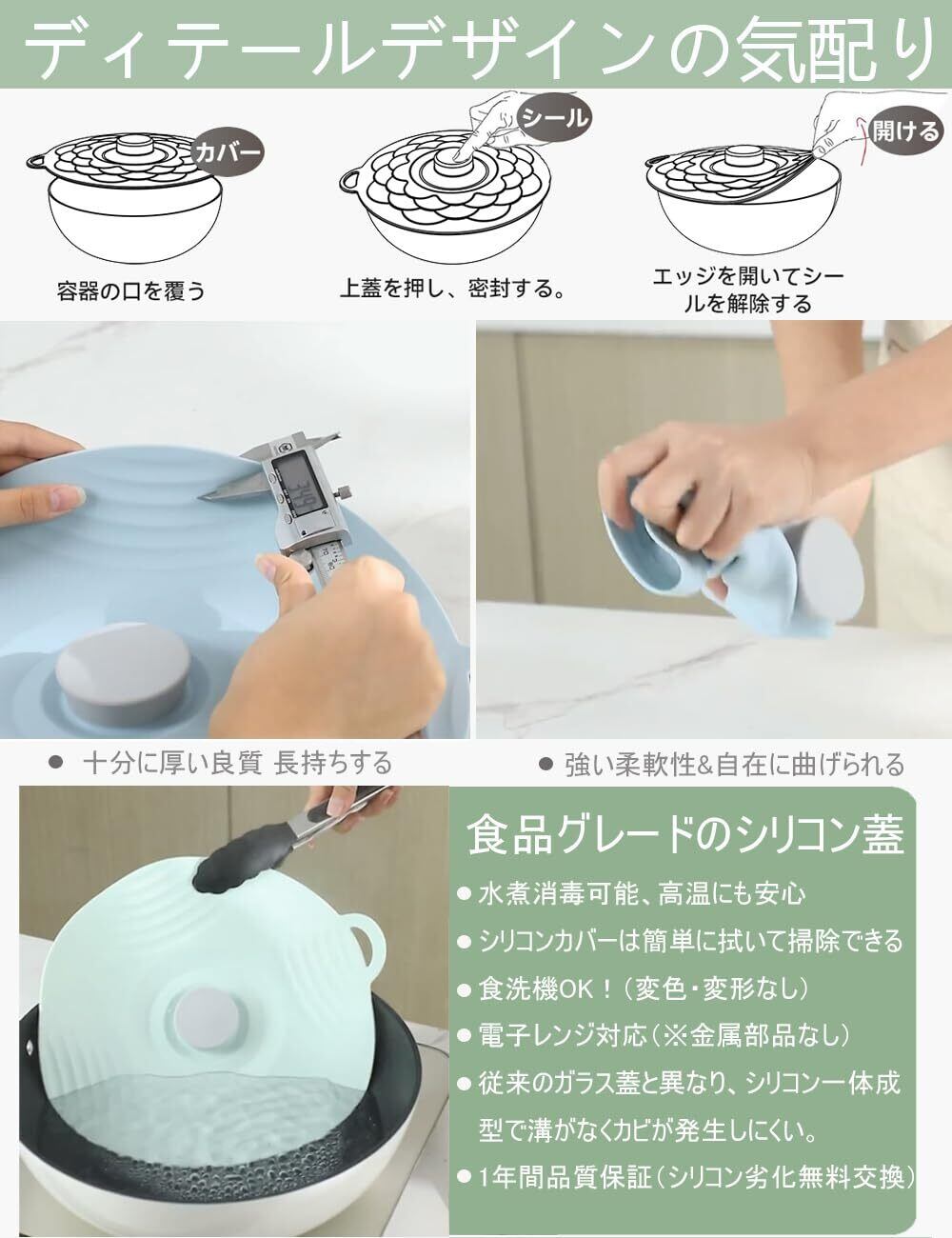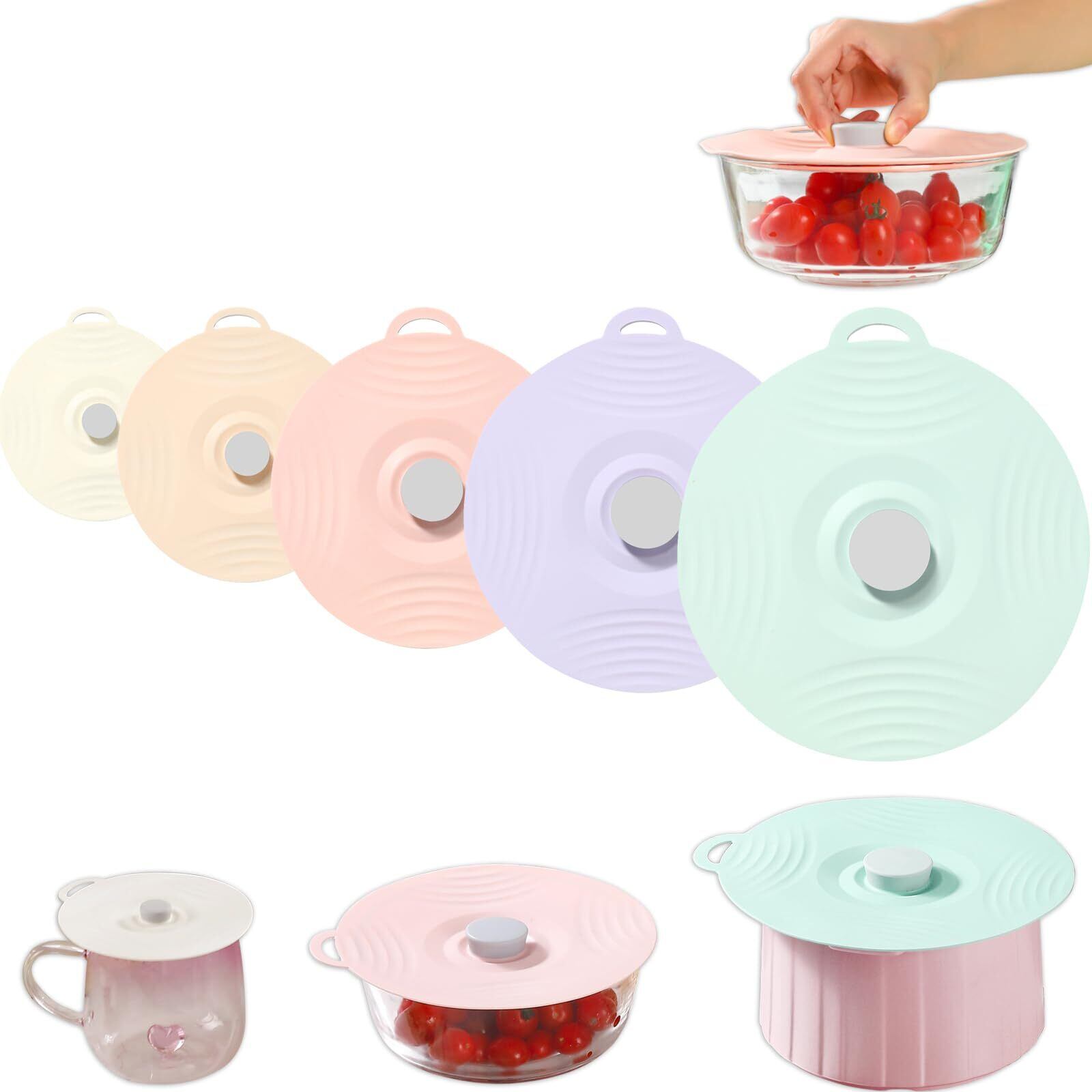 【密閉性・食材の鮮度を最大限キープ&使いやすくて楽しい】:鍋、フライパン、ボウル、皿、カップ、瓶、その他の容器に蓋を置き、軽く押すだけで気密で漏れ防止の吸引シールが形成されます。蓋の縁をゆっくり持ち上げたり、スライドさせたりすると、密閉が解除されます。大きすぎず小さすぎず、フタとしてしっかりフィットしてスムーズな調理をサポート。真空が生まれる密閉性で、虫やホコリ、灰からもしっかりとガード。料理をアツアツのまま保温します
