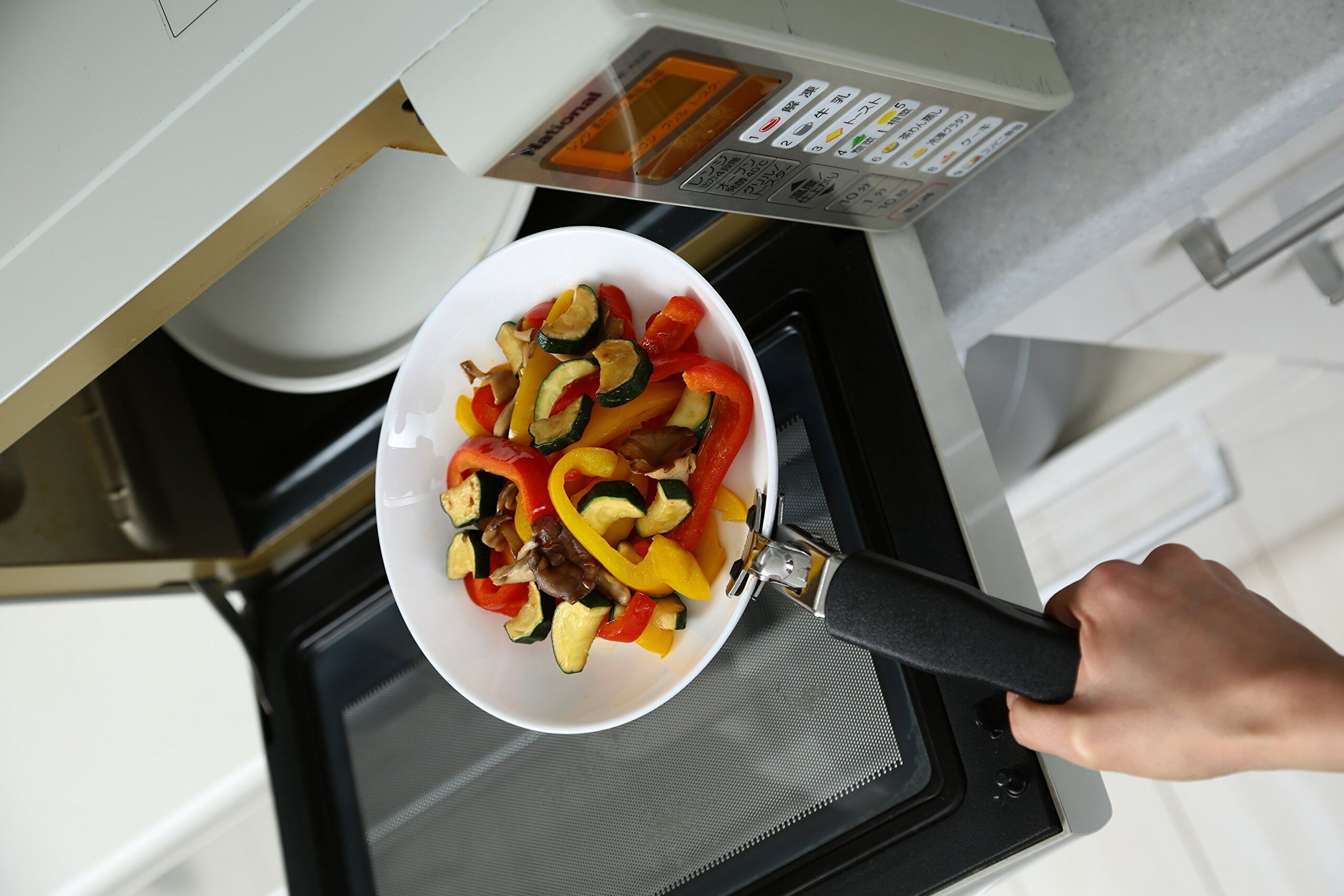 フライパンや鍋だけでなく、オーブンや電子レンジで加熱した熱いお皿の取り出しも可能