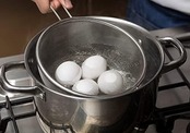 たまごに穴を開けて⇒ゆでると⇒カラがむきやすい