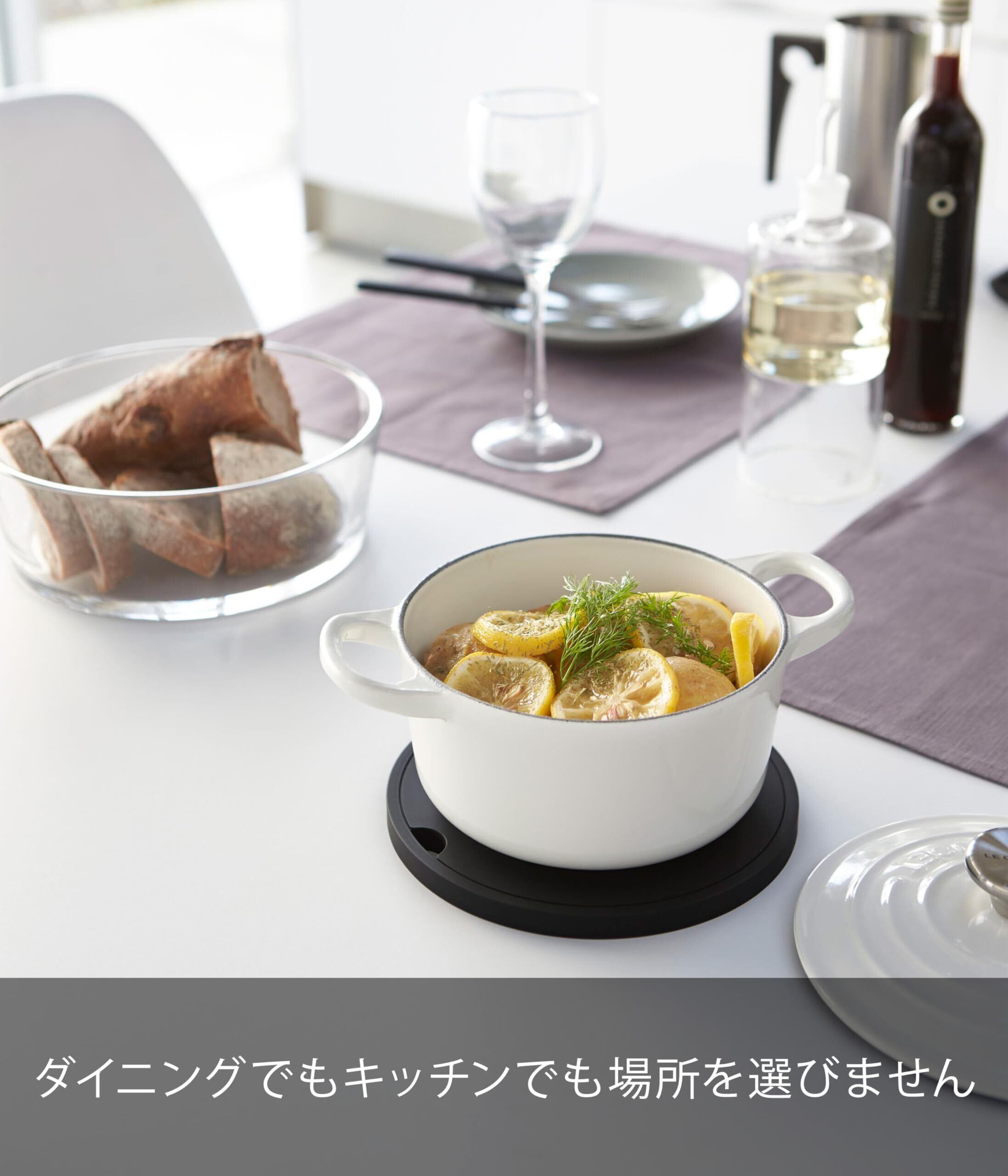 調理中の鍋の一時置きにも重量のある鋳物ホーロー鍋もしっかり置ける鍋敷き。