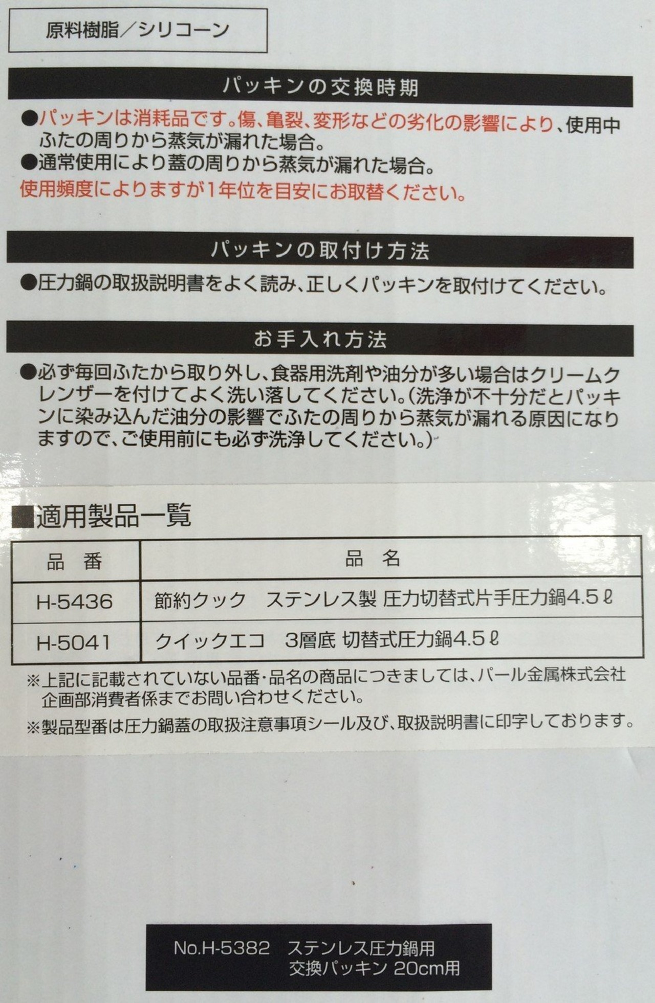 ※このパッキンは、『パール金属ステンレス製圧力鍋専用』ですので、他社の圧力鍋には使用できません。