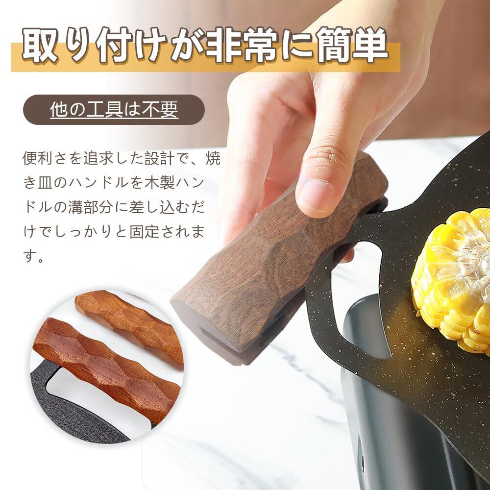 LIKENNY 鉄板取っ手 火傷防止 マルチグリドル 取っ手 厚さ4mmまでのマルチグリドルに対応可能 鉄板 キャンプ ケース 自宅 取付簡単 ウッドカバー