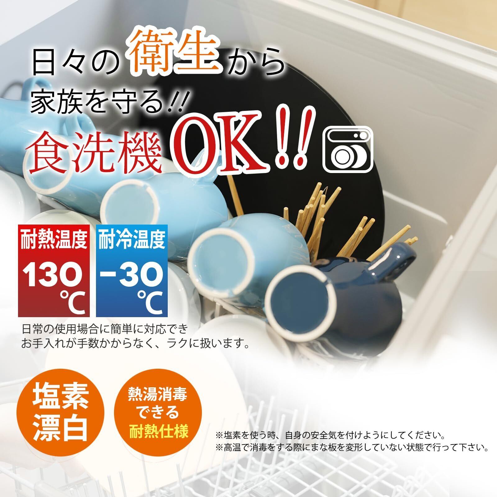 【食洗機対応】使用温度:-30℃~130℃、食洗機完全対応。熱湯消毒OK・塩素漂白可、お手入れラクラクなまな板。水捌けが良い、洗った後フックにかけて、三分だけ速く乾く。そこですぐ収納しても、衛生面上の心配がないです。●食洗機使用の前に、まないたのサイズを考えて、入れるどうかが事前に確認してください。