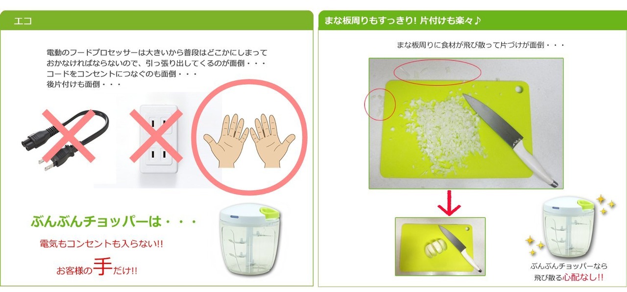 材質:本体/PS樹脂、ゴム足/TPR樹脂、フタ/ポリプロピレン・POM、ハンドル/ABS樹脂、シャフト/ポリエチレン、刃/ステンレス刃物鋼、保存用蓋/ポリプロピレン、混ぜ器/ポリプロピレン