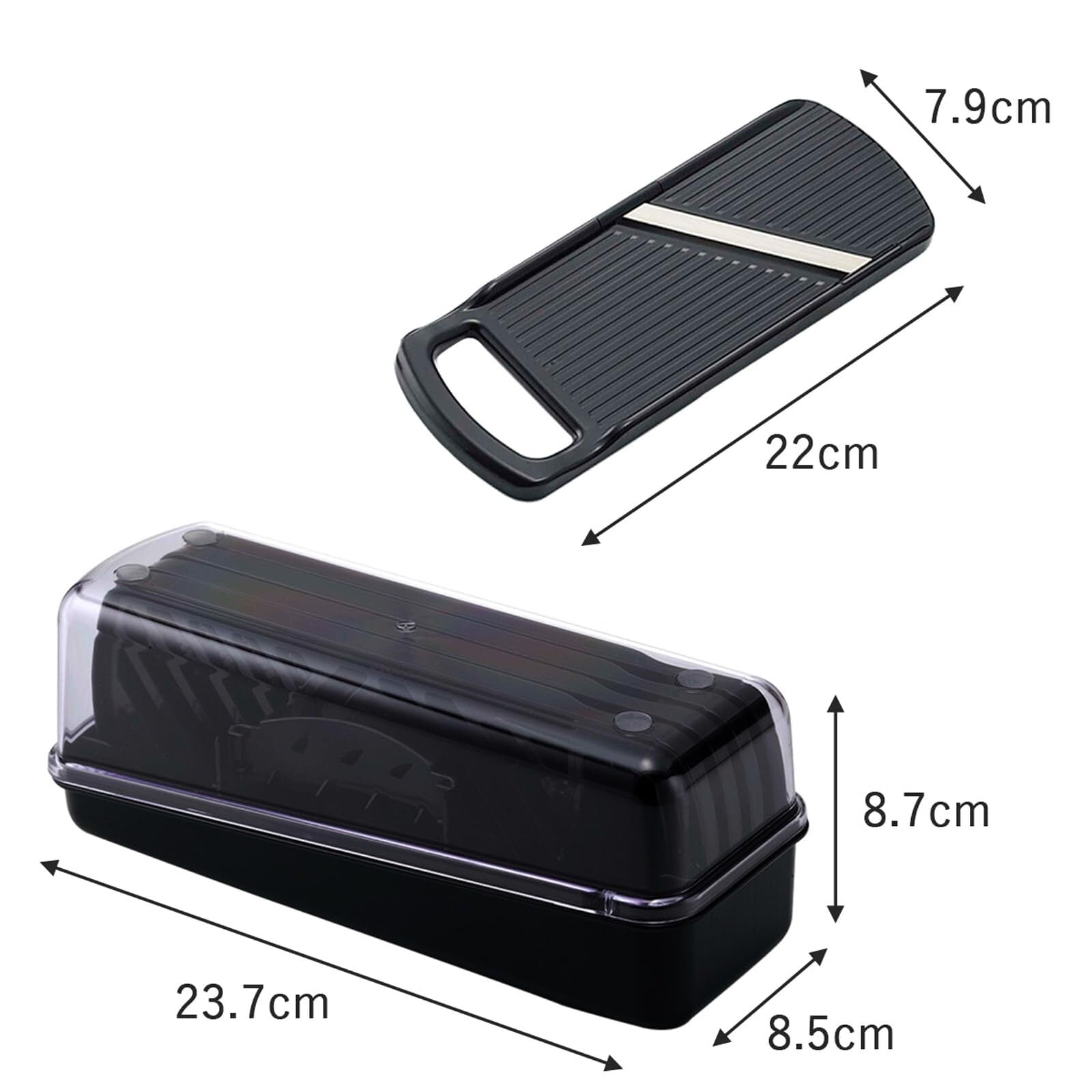 千切り、つま切りのプレートは安全性の高いボックス刃。専用ケースでコンパクトに収納