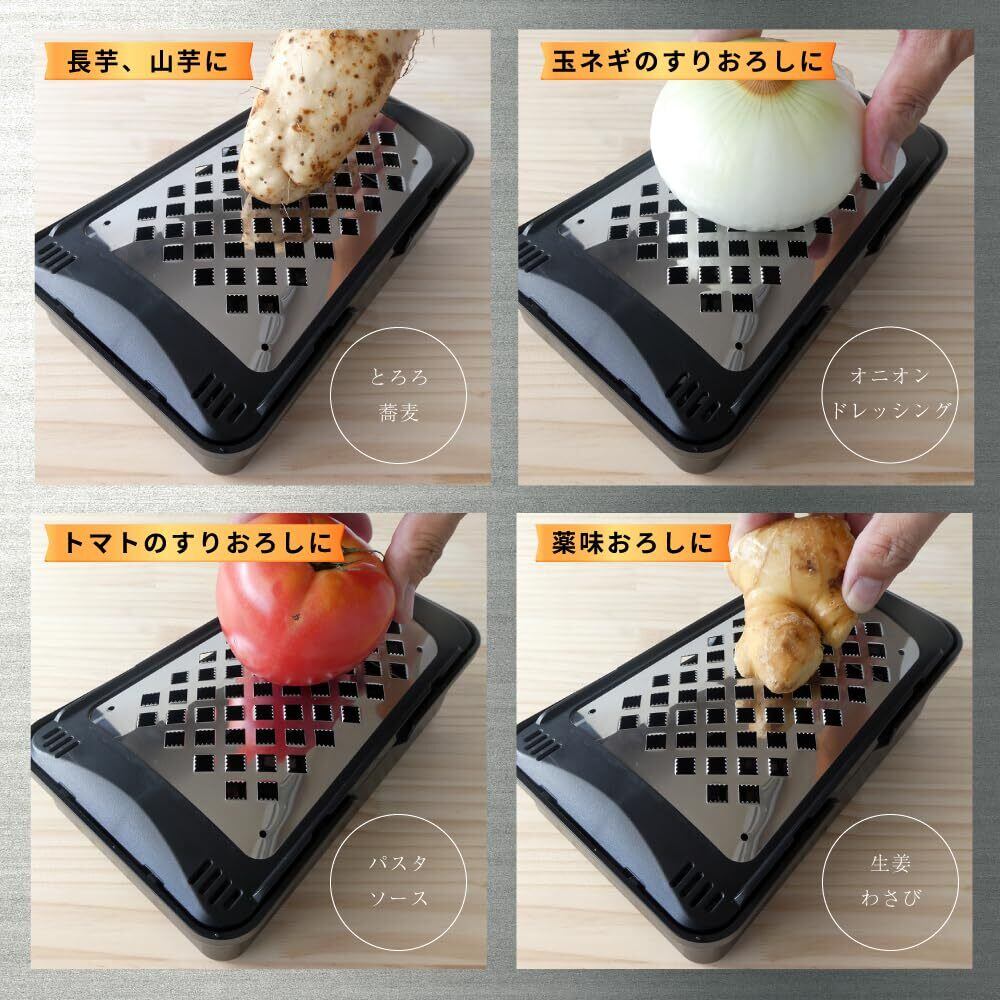 【素材を活かす鋭い刃】 食材の繊維を壊さずに、風味豊かで滑らかなおろし上がりを実現します。大根、わさび、しょうが、にんにく、山芋、チーズなど、様々な食材に対応。