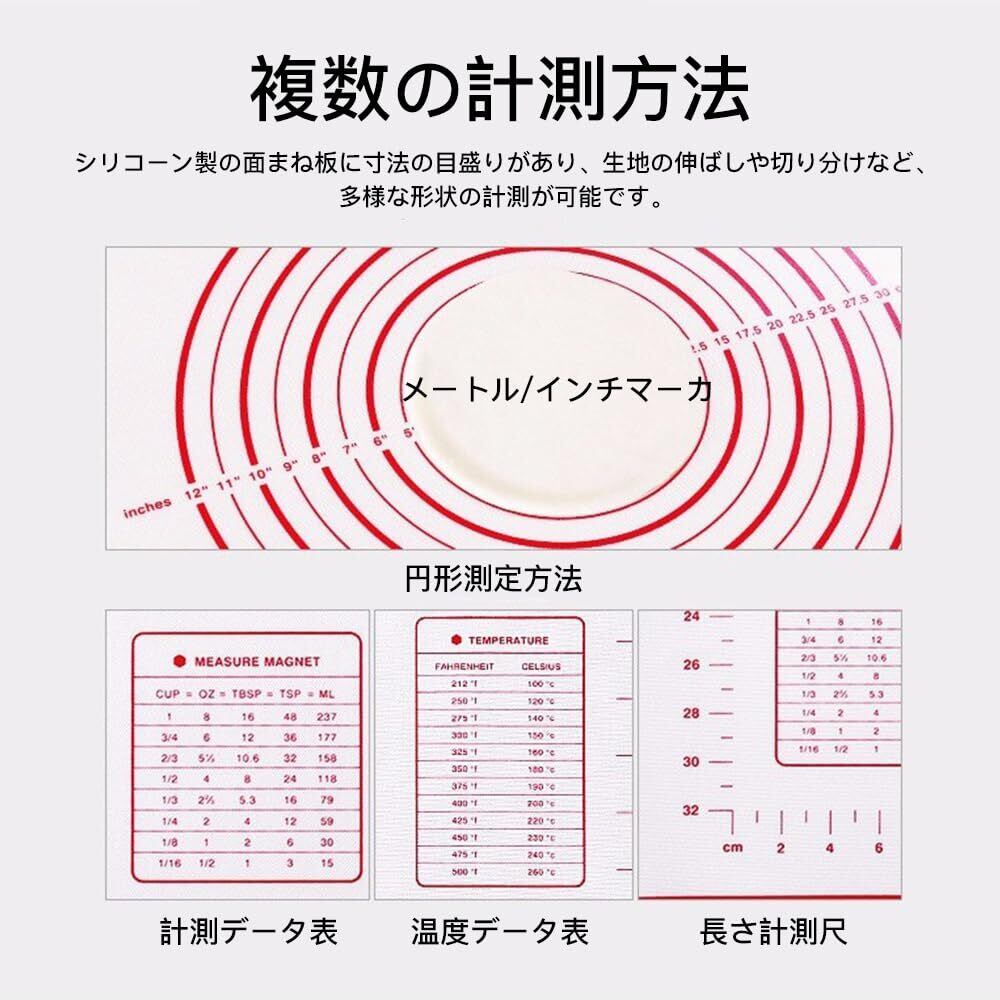 マット表面に目盛りが印刷されているため、生地の厚さや大きさの確認が非常にスムーズ。初心者からベテランまで、様々なクッキングシーンで活躍する便利な機能を搭載しています。