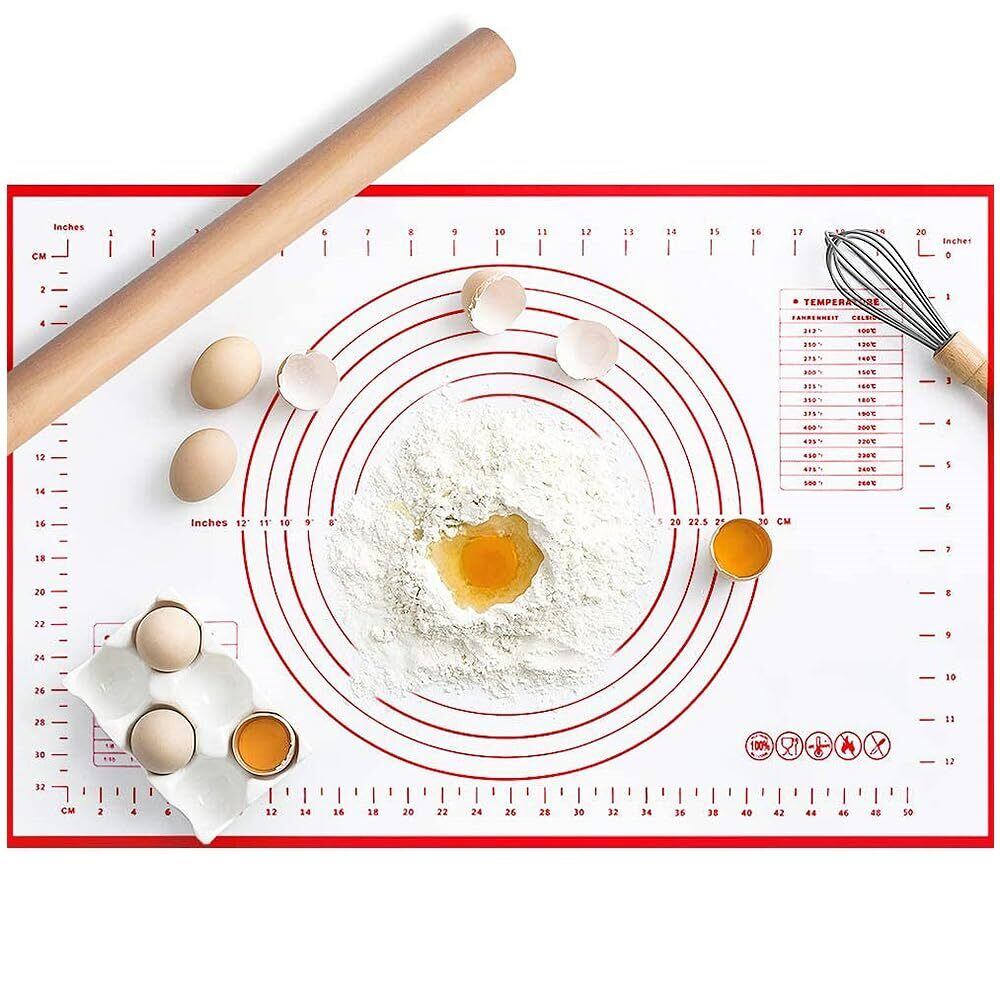 LOYELEY クッキングマット パンこねマット 大きいサイズ 製菓マット パン作りシリコンマット 耐熱 滑り止め 目盛り付き 繰り返し使用可能 ベーキングマット 製菓道具 調理台保護マット (レッド, 40×60cm)