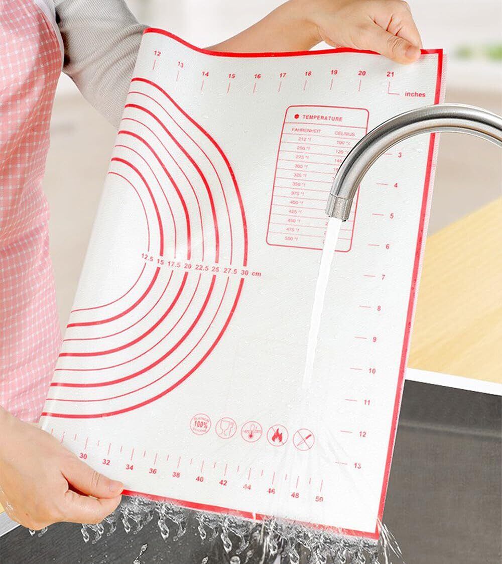 耐熱温度に優れ、オーブン使用可能なこのマットは、焼きあがりにも対応。さらに、滑り止め機能付きなので、作業中のズレを気にすることなく、安心して作業が行えます。毎回のメンテナンスも簡単です。