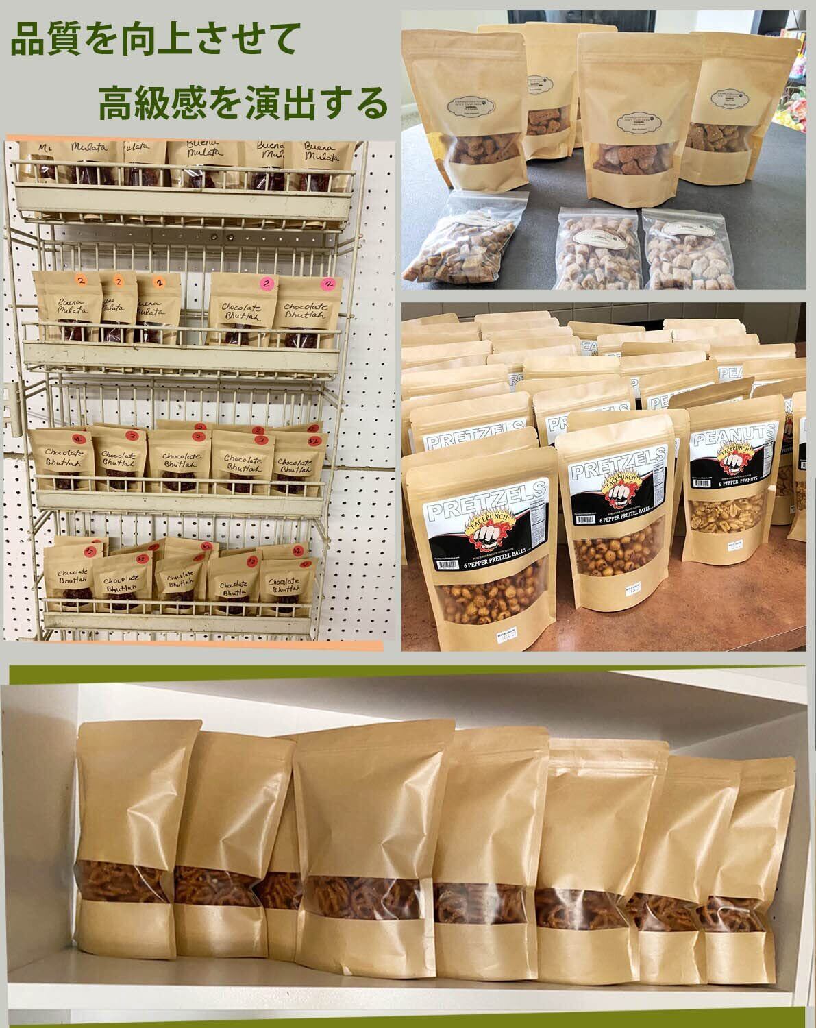 【内外防水、耐油】 50枚:幅9cm、長さ14cm。クラフト紙 窓付き ジッパー袋 は、ファッションと実用性を兼ね備えた包装袋です。ジッパーのデザインにより、内部のアイテムの漏れを効果的に防ぎ、アイテムの保存にも役立ちます。内外防水、防油の設計は、紙袋の乾燥と外観の清潔さを保つだけでなく、汚れや油の影響を物品から遠ざけることができます。