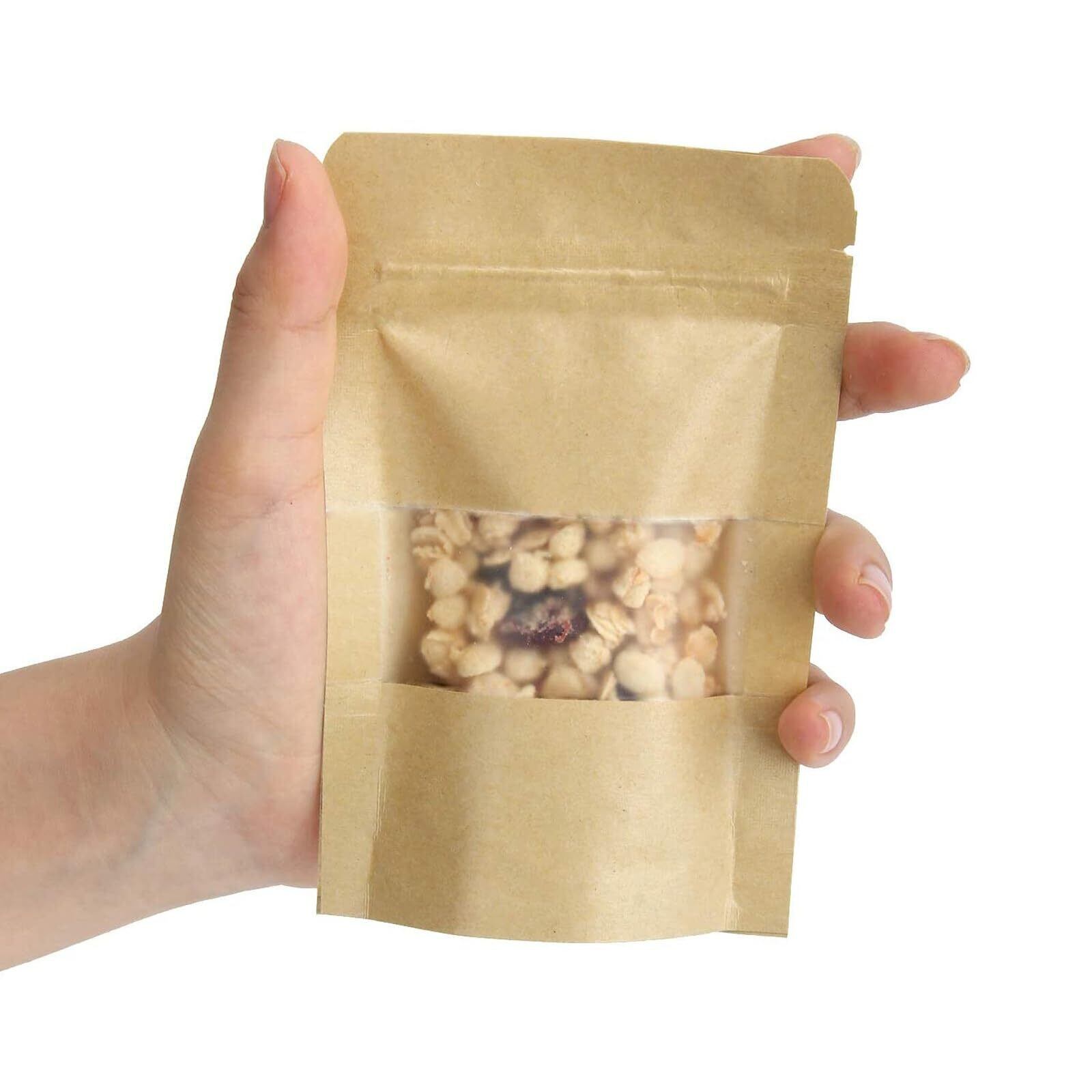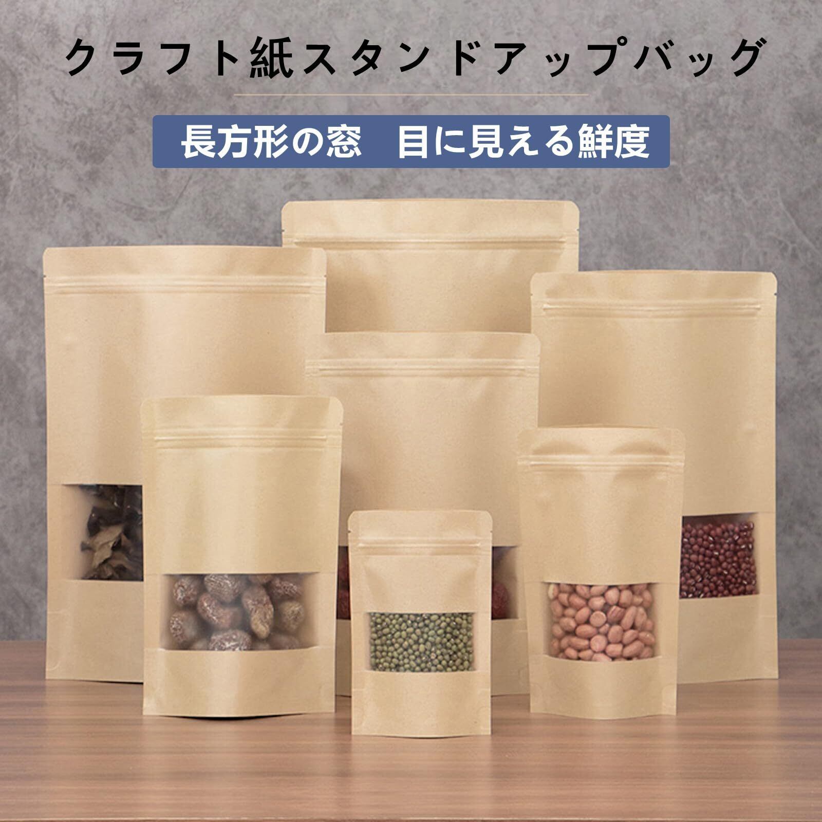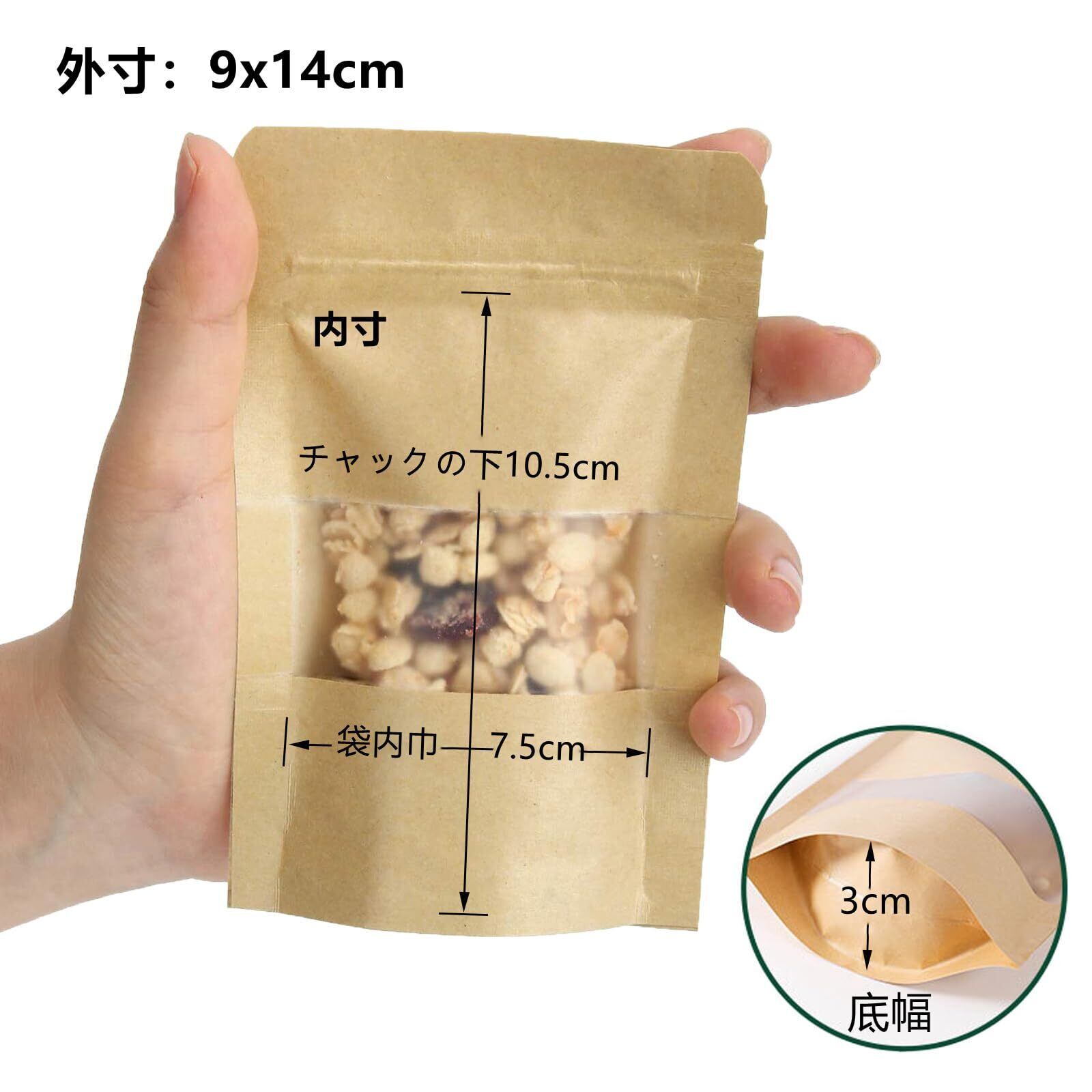 50枚 クラフト 紙袋 窓付き チャック 付き 袋 コーヒー袋 ジップ袋 防水 耐油 お菓子 ジッパー付き 紙袋 自立 食品用 真空 防カビ 防臭 包装 袋 (9x14cm-50枚)