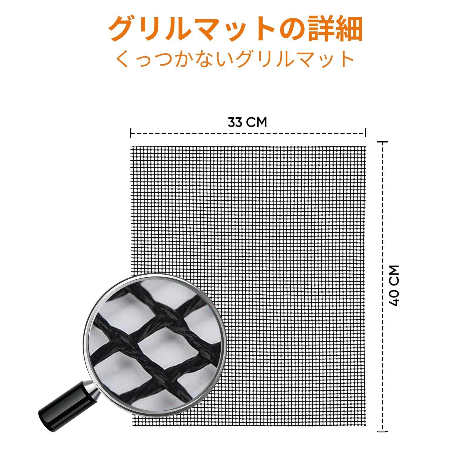 このグリルメッシュマットはグリルやキッチンでの調理に最適です。食材がグリルにくっついたり落ちたりするのを防ぎ、衛生的で効率的な調理をサポートします。40×33cmの大きなサイズは、オーブン、電気ベーキングトレイ、フライパンなど、さまざまな調理器具にぴったりフィットします。高品質の素材を使用し、耐熱温度は-30℃から260℃まで対応。冷凍・解凍はもちろん、高温でのグリルにも適しています。