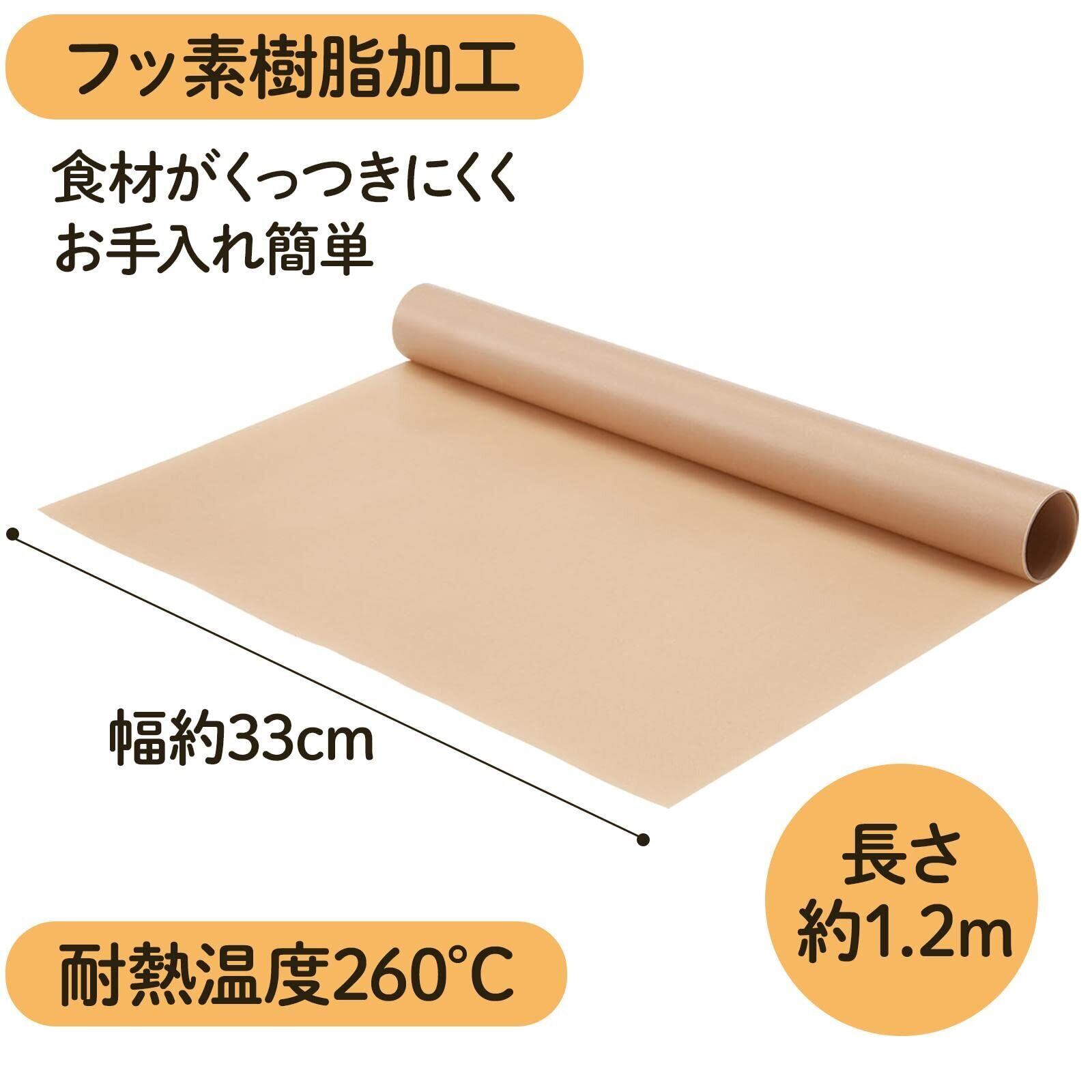 コモライフ 自由にカットできるクッキングシート クッキングシート オーブンペーパー 耐熱 自由にカットOK 水洗いOK 繰り返し使える フッ素樹脂加工 くっつきにくい お手入れ簡単 【耐熱温度:約260℃】 【約幅33cm×長さ1.2m】