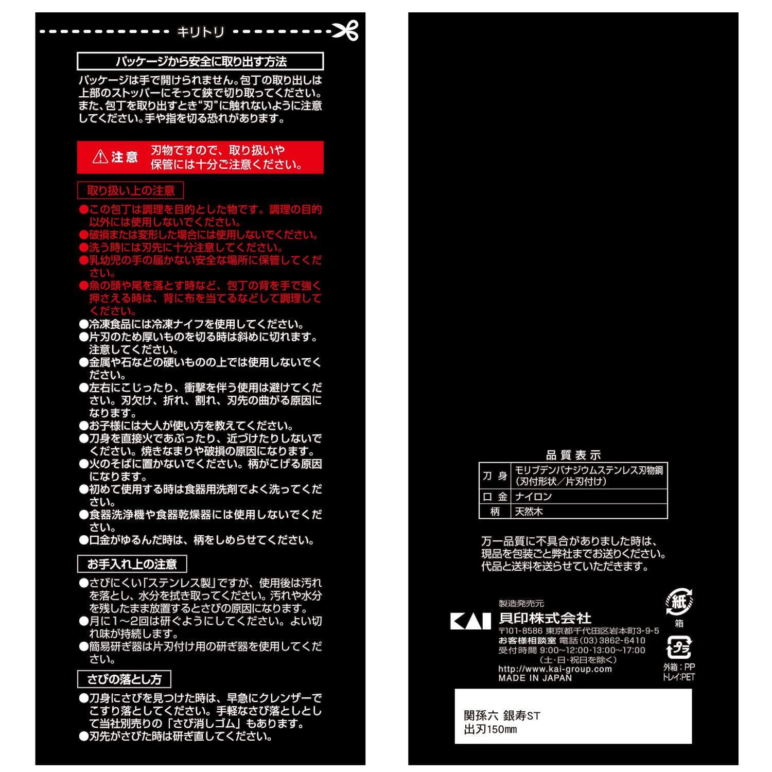 貝印 KAI 出刃包丁 関孫六 銀寿 ステンレス 150mm AK5061