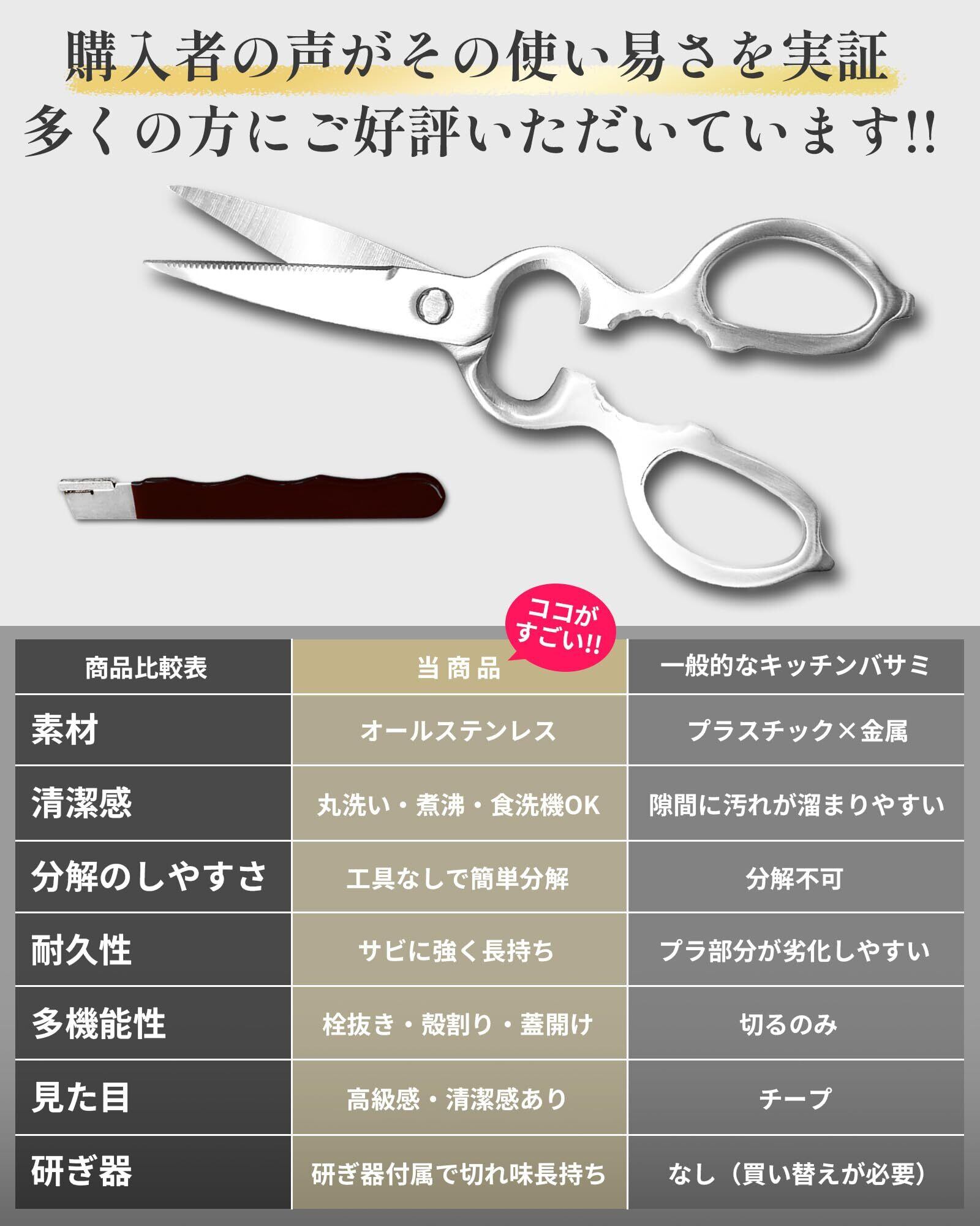 【主婦からプロまで大絶賛の調理はさみ】家庭料理、アウトドア料理、バーベキュー、キャンプにも最適。コンパクトで持ち運びやすく、プレゼントにも喜ばれる高性能万能はさみ。お料理教室やギフトにもおすすめです!