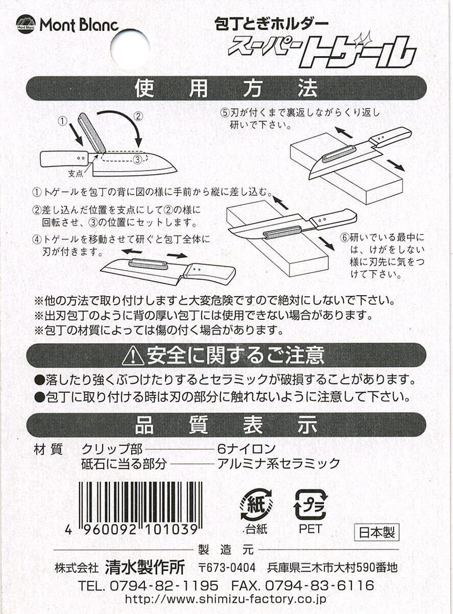 清水製作所 包丁研ぎ 角度 固定ホルダー スーパートゲール 日本製 100mm