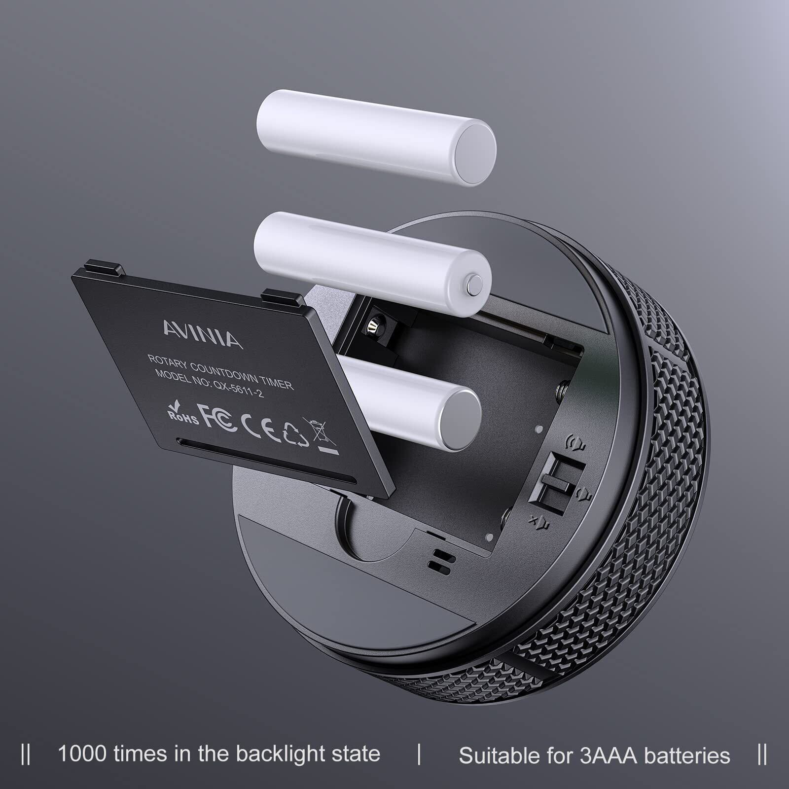【 省エネ & 365日】:単4電池3本で駆動します; タイマーが作動しない場合、操作しない場合、ディスプレイの明るさは薄暗くなり、数秒で消灯します。 スリープモードでエネルギーを消費しないことを心配しないでください。 各AVINIA TIMERには1年間の品質と詳細な取扱説明書が付いています。安心してご注文ください。