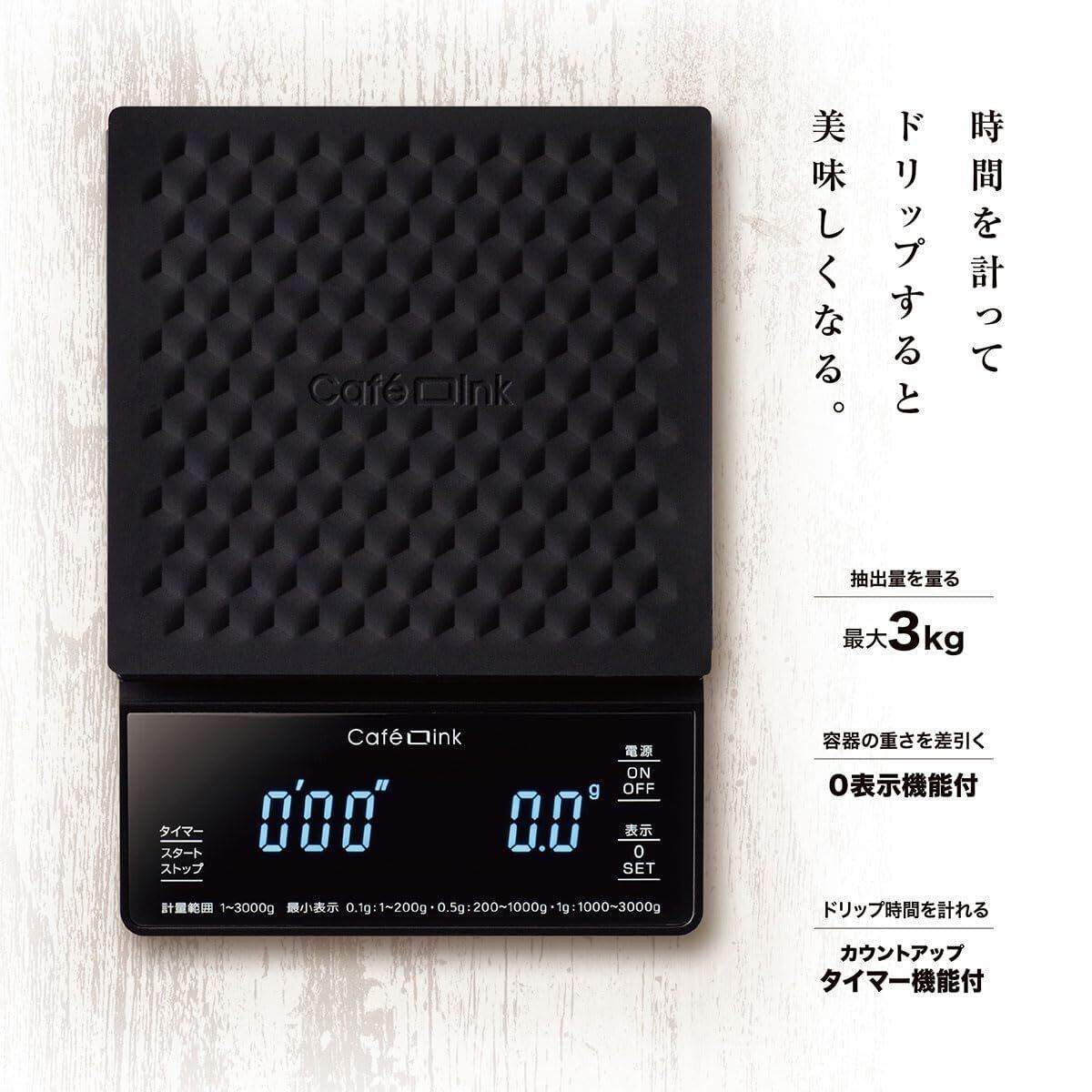 アトラス コーヒースケール ドリップスケール はかり デジタル 0.1g デジタルスケール 3kg 計量器 タイマー機能 ブラック ADCS-03