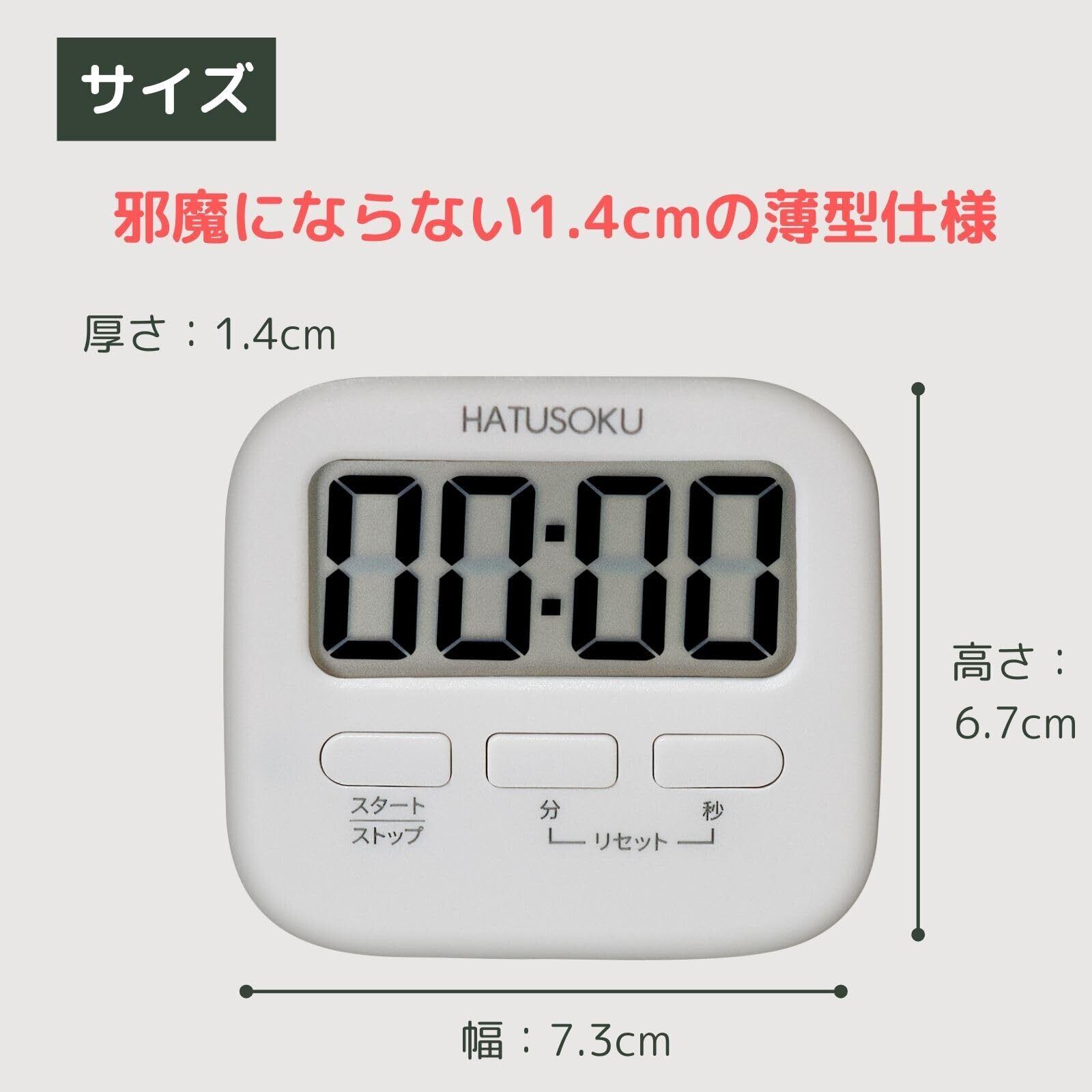 HATUSOKU サイレントモード搭載 光るタイマー キッチンタイマー 勉強タイマー 学習タイマー マグネット スタンド 吊り下げ (ホワイト)