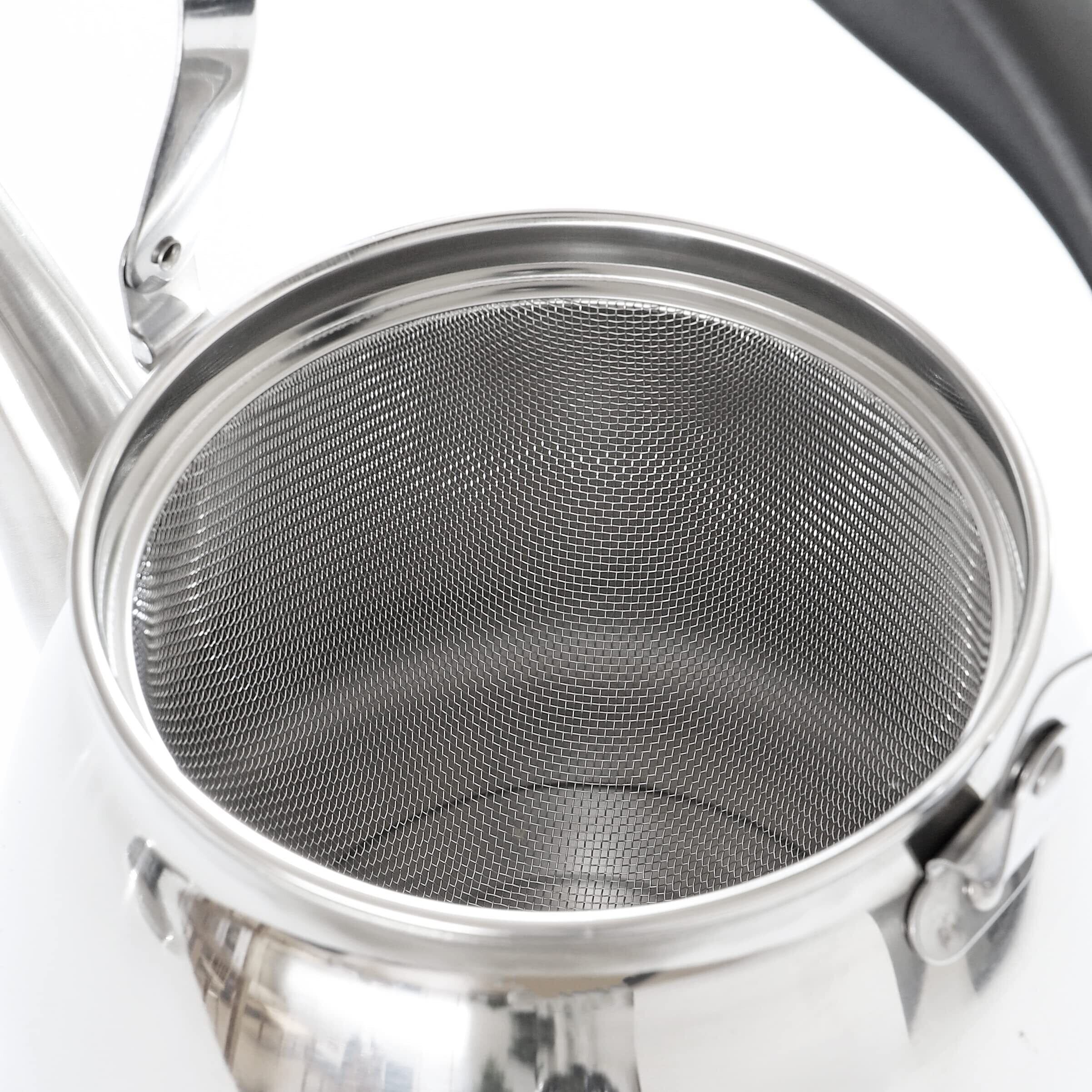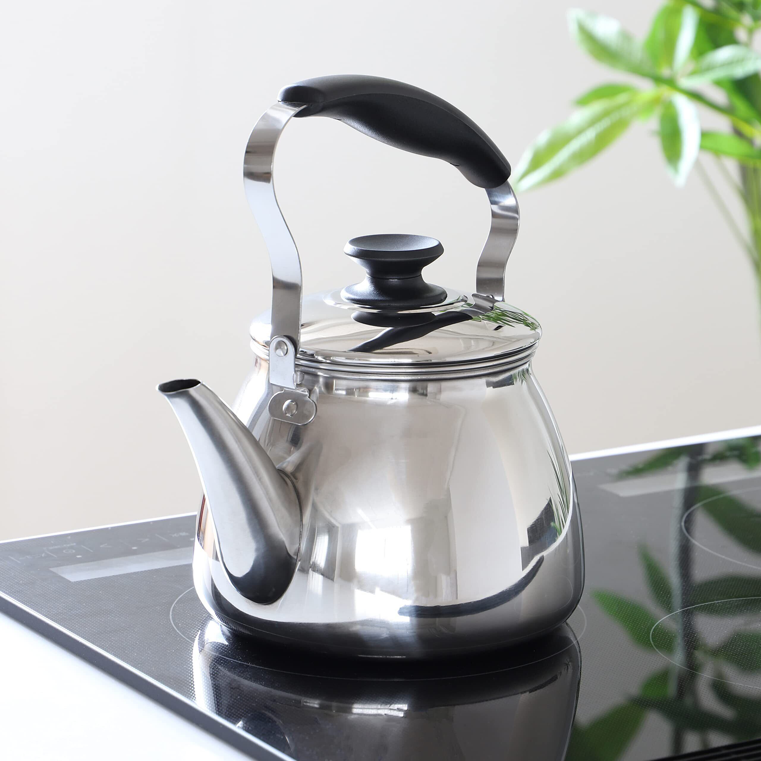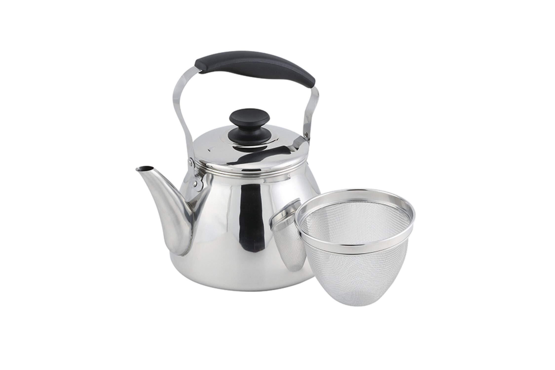 ○お茶の煮出しに便利な、深型の茶こしアミが付いたステンレス製ケトル(やかん)です。 ○広口なので中まで洗えて衛生的です。2Lの冷水筒、パーソナルジャグ2本分を1度に沸かせる、大容量モデルのケトルです。 ○ガス火はもちろん、200VのIHクッキングヒーターやハロゲンヒーターなどオール熱源に対応しています。