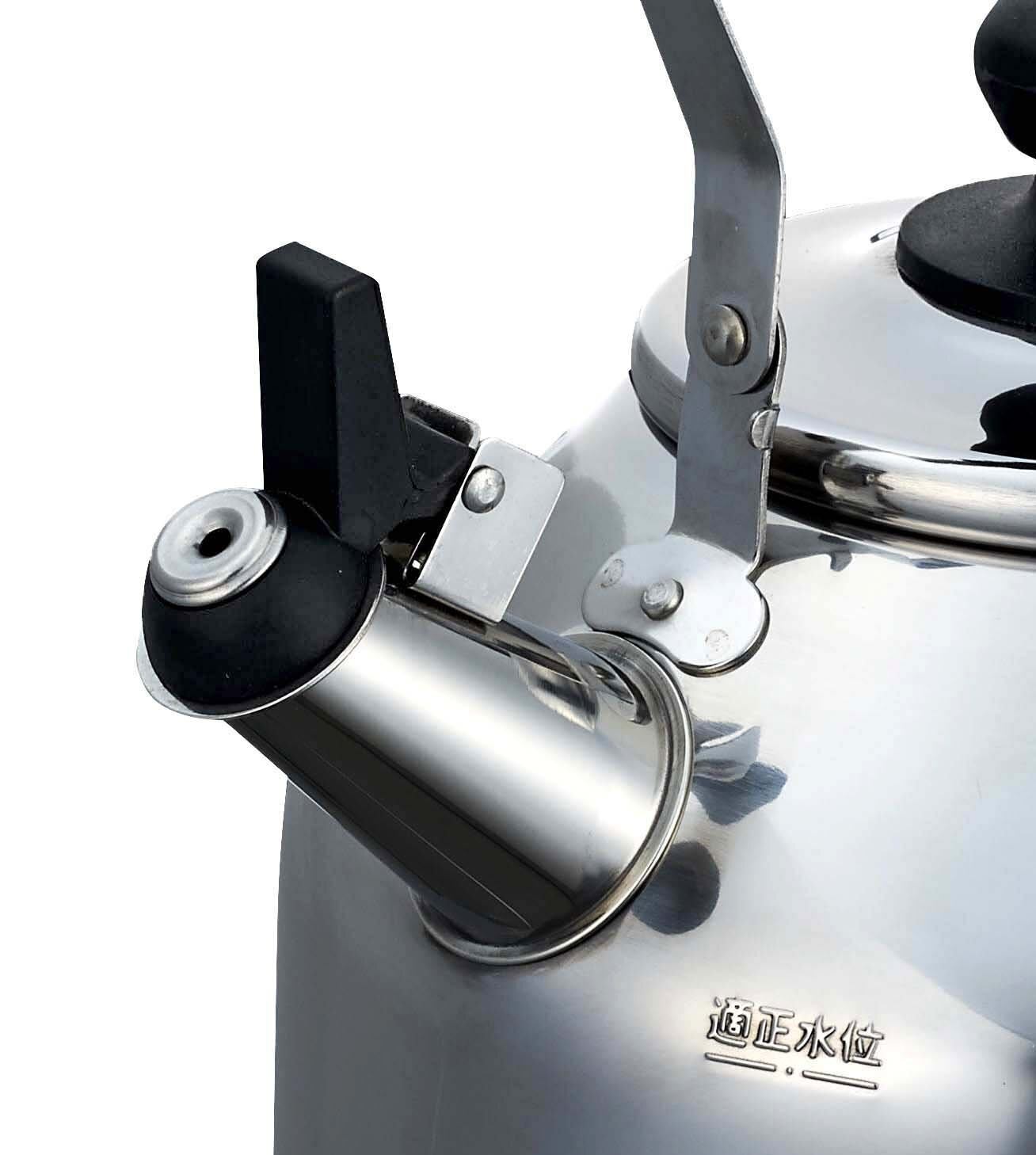 材質:本体・蓋/ステンレス鋼、取っ手・蓋つまみ/フェノール樹脂(耐熱温度150度)、笛部/ナイロン(耐熱温度180度)