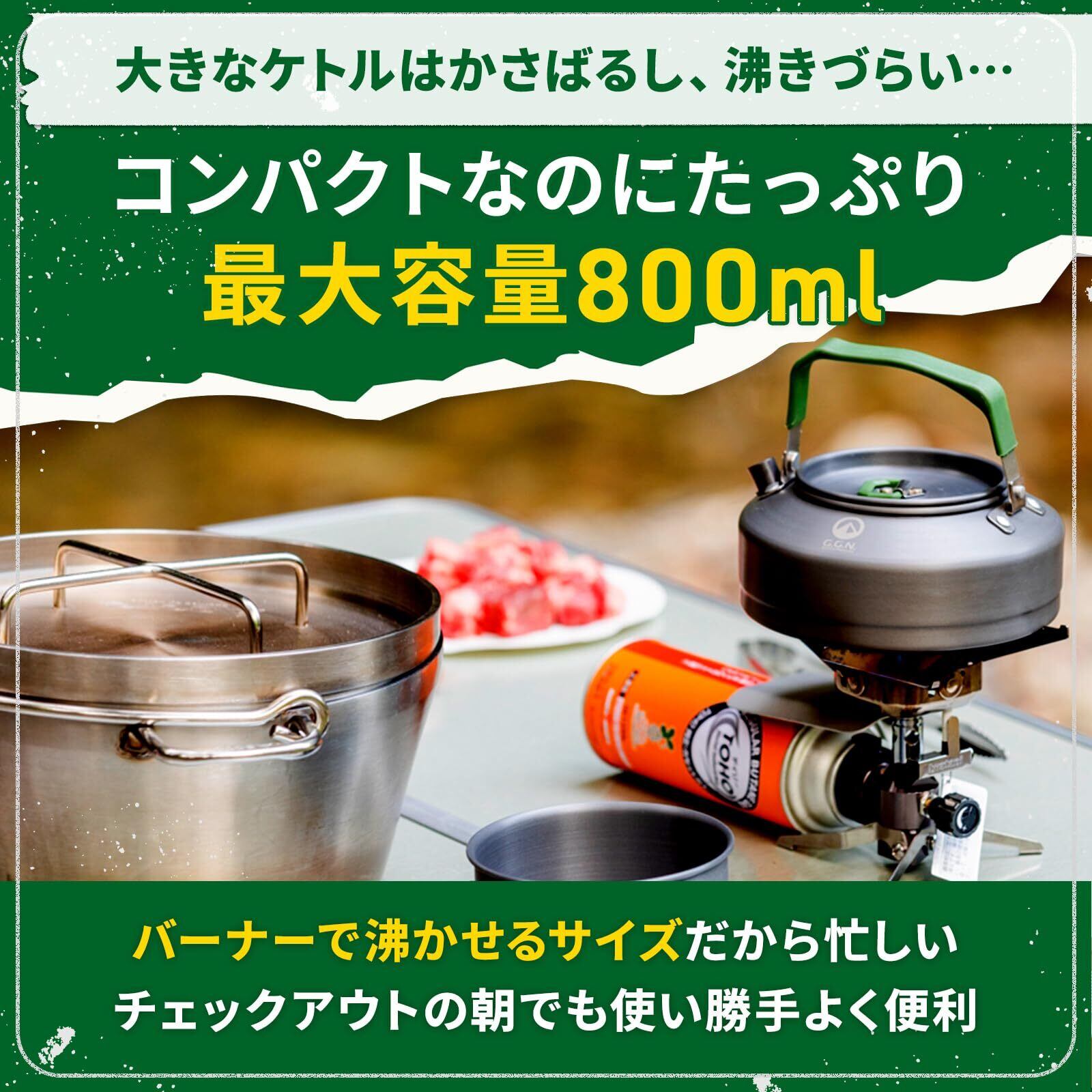 ジージーエヌ ケトル キャンプ アウトドア やかん 直火 アルミ 軽量 コンパクト 800ml アルマイト