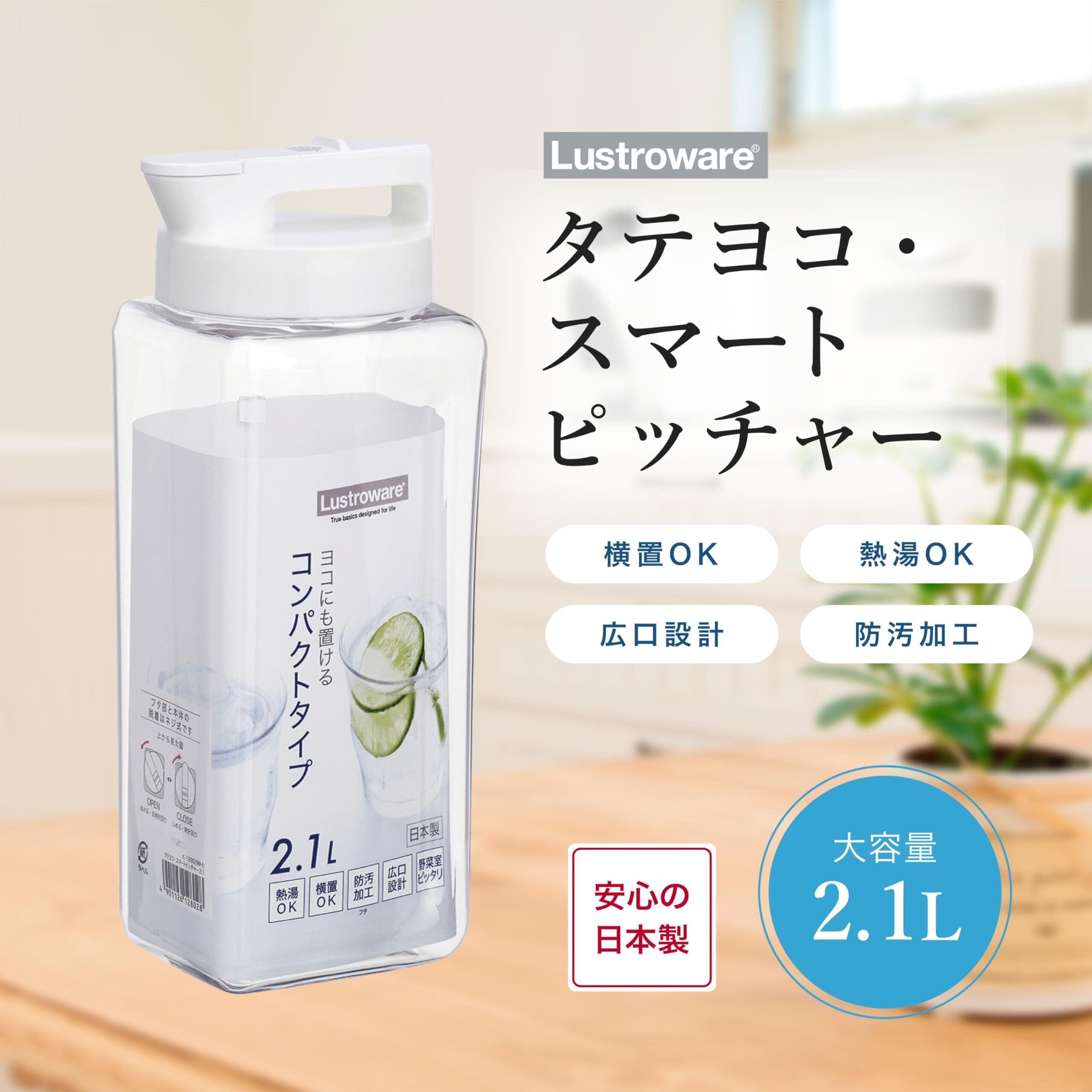 岩崎工業 ラストロウェア 冷水筒 スマート ピッチャー 2.1L 日本製 耐熱 縦横置き 麦茶ポット 水出しコーヒー 麦茶ボトル 冷水 お茶ポット ウォーター 冷茶 ボトル ジャグ 熱湯可 横置き ホワイト 広口 K-1280 WH