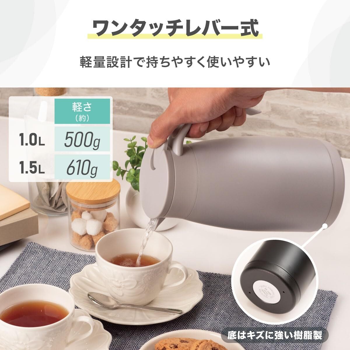 アトラス 保冷ポット 保温ポット 1.5L 軽量スリム 節電 省エネ 時短 エコ 卓上ポット ステンレスポット 魔法瓶 保温 保冷 真空断熱二重構造 洗いやすい ワンタッチレバー 広口 ブラック 白湯 ATP-1500BK