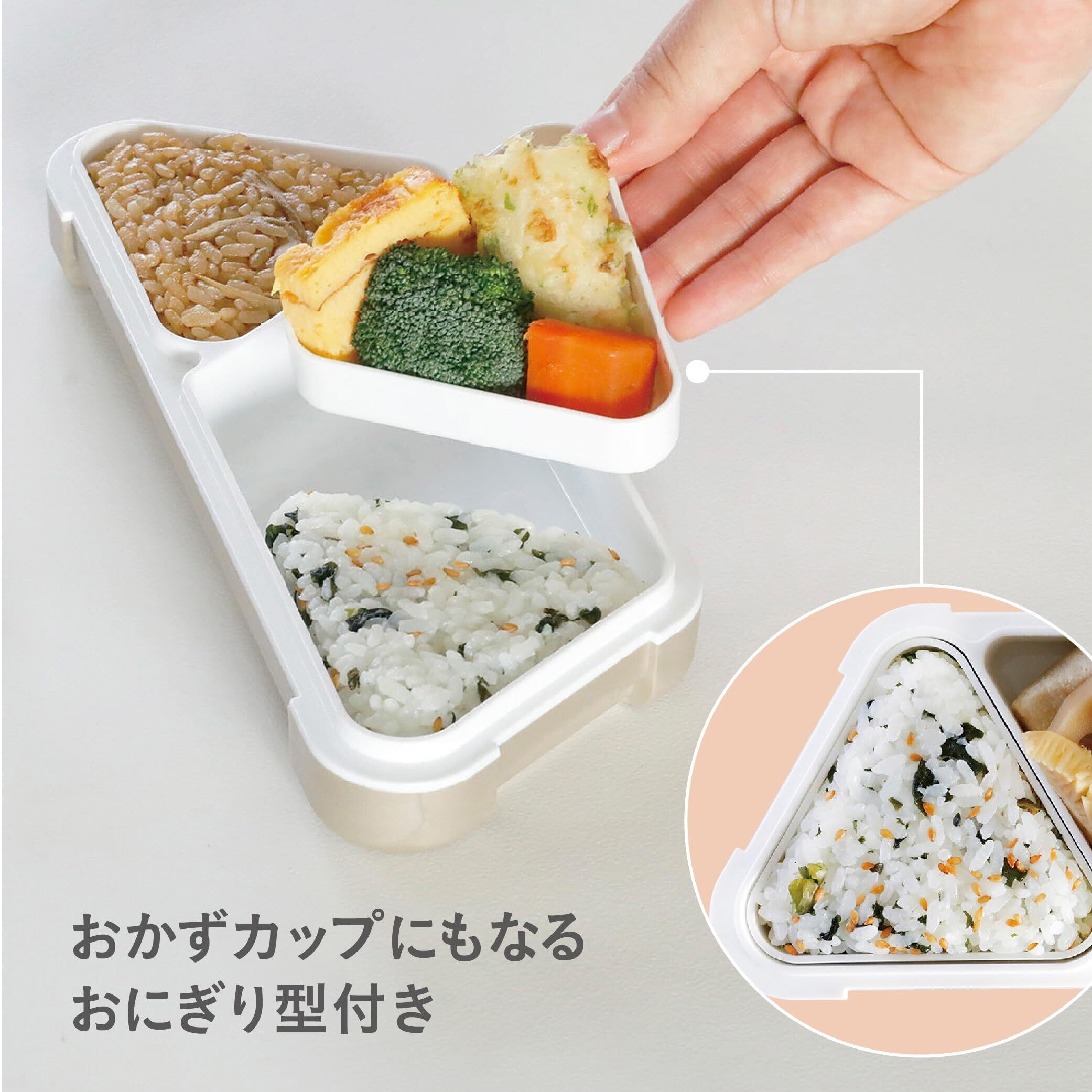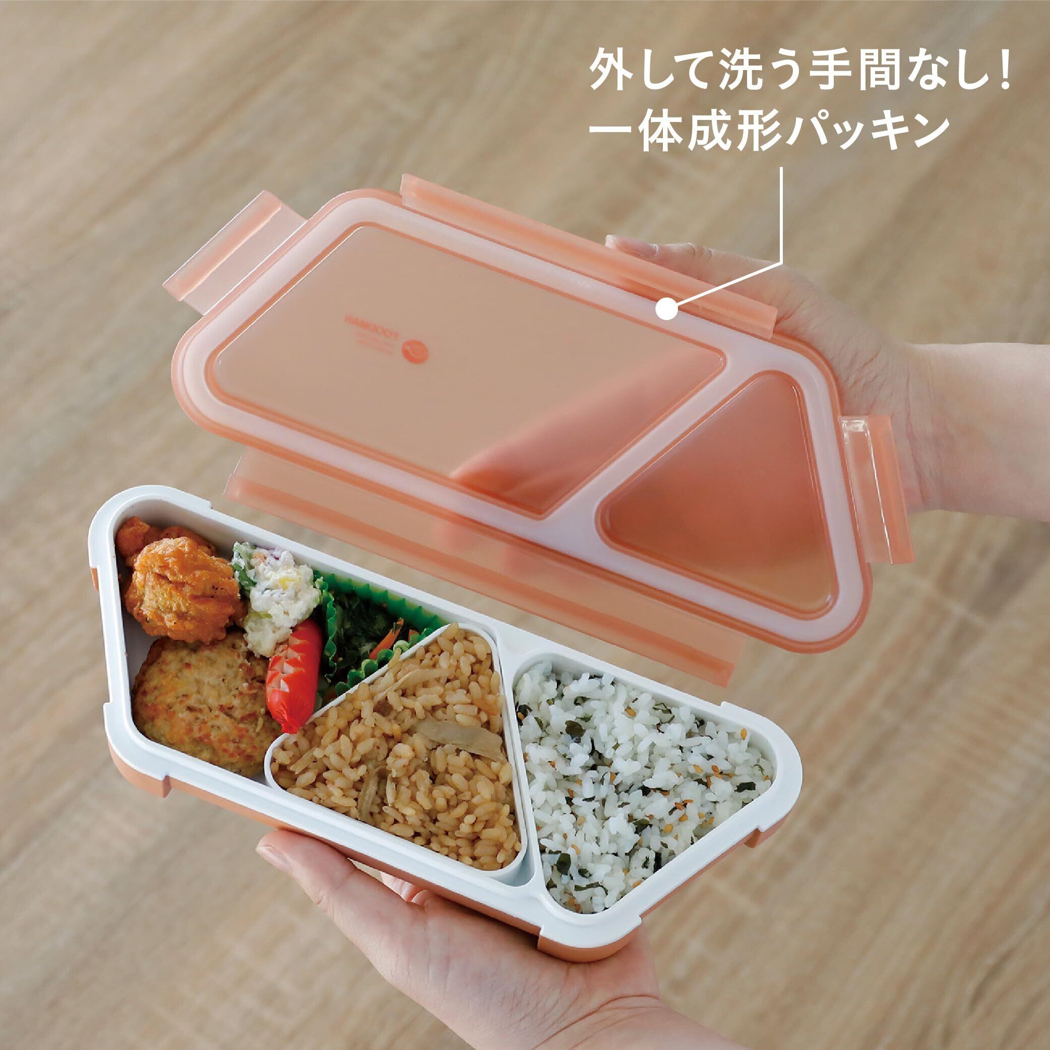 【おにぎりを持ち歩く】台形型の薄型弁当箱で、おにぎりが3つ収まる「薄型弁当箱 抗菌フードマンおにぎり」。おにぎりを作れるおにぎり型は、おかずを盛り付ければ、おかずカップとしても使えます。