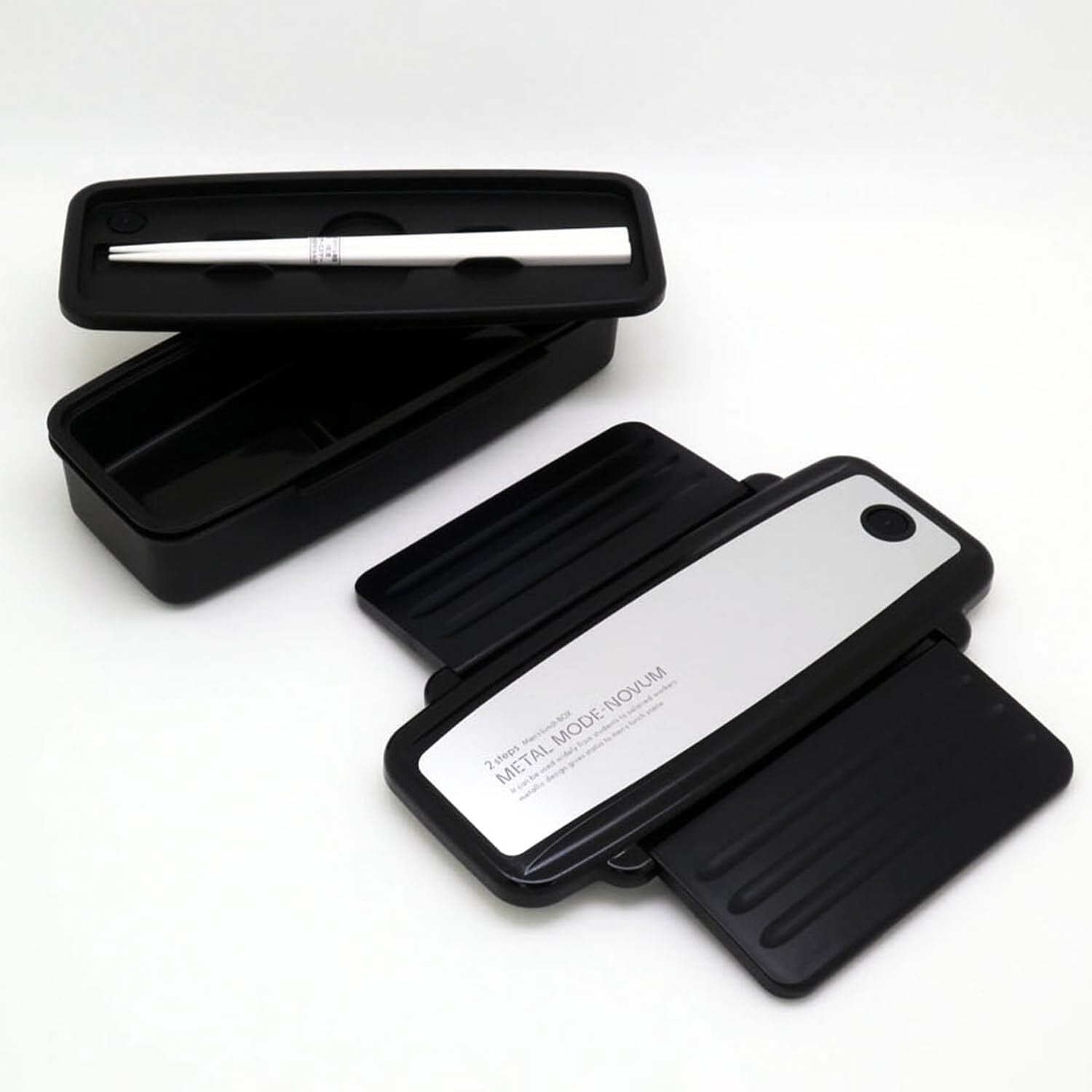 素材・材質:本体・仕切・フタ(上)=ポリプロピレン、フタ(下)=AS、止め具=ABS、パッキン・吸排気弁=シリコーンゴム、箸=PMMA