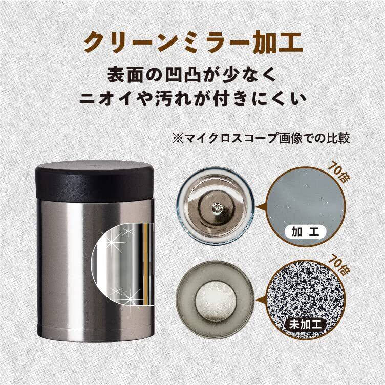 超軽量のフードポット容量350ml重量195g 内面をクリーンミラーという防汚・防臭に強い加工を施しているのでお手入れしやすい!使い心地がいい! 真空2重構造!温かいお料理や、冷たいお料理を持ち運び出来ます。 広口設計で大きい具も入れやすく、食べやすい!