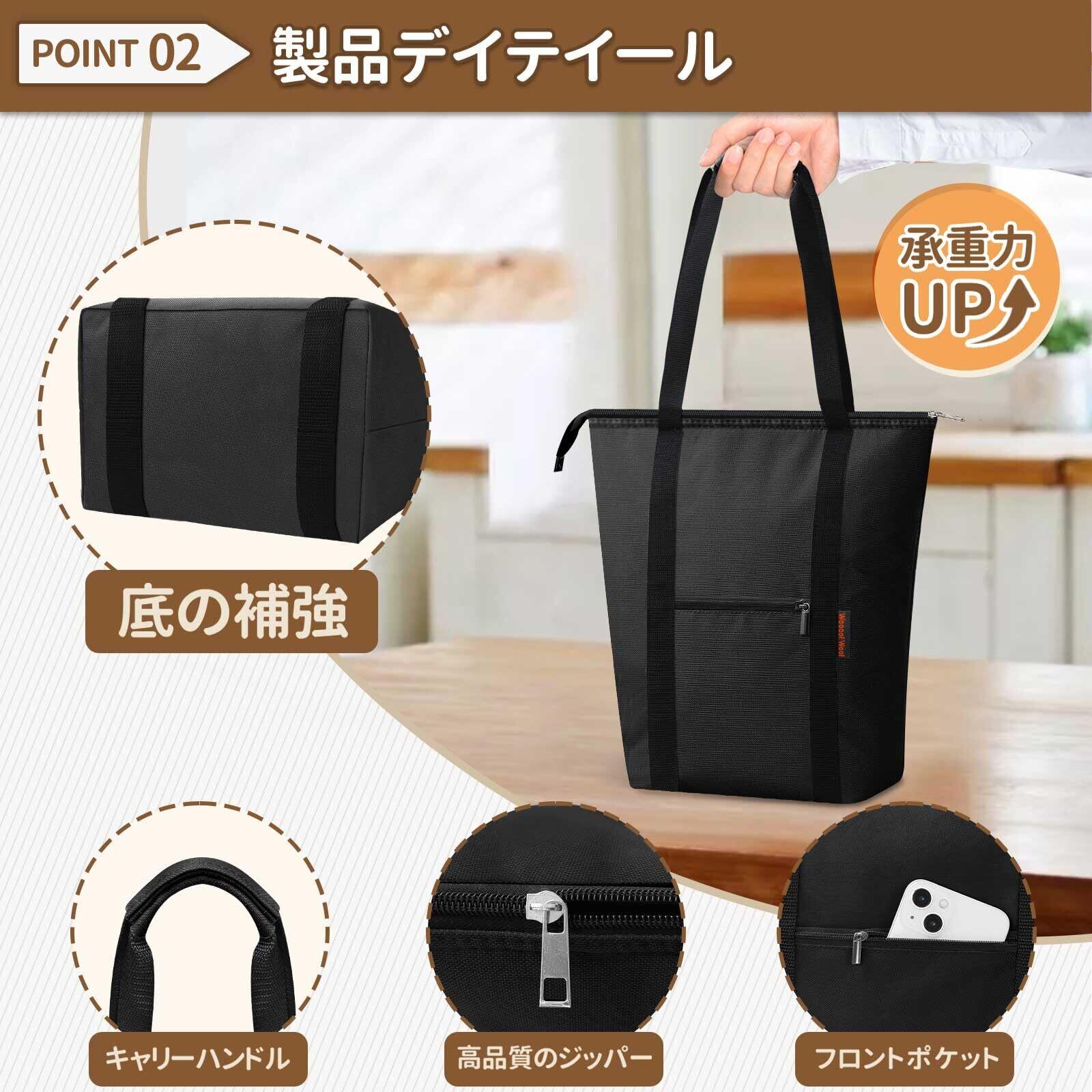 【耐久性ジッパー&承重力UP】強化ジッパーを装備しており、耐久性向上と荷物の飛び出し防止を両立しています。強化された持ち手のデザインは、重い荷物にも耐えられ、袋が破れる心配がありません。さらに、取っ手ストラップは保冷バッグの底部まで延長設計されており、これにより耐荷重性能が向上。