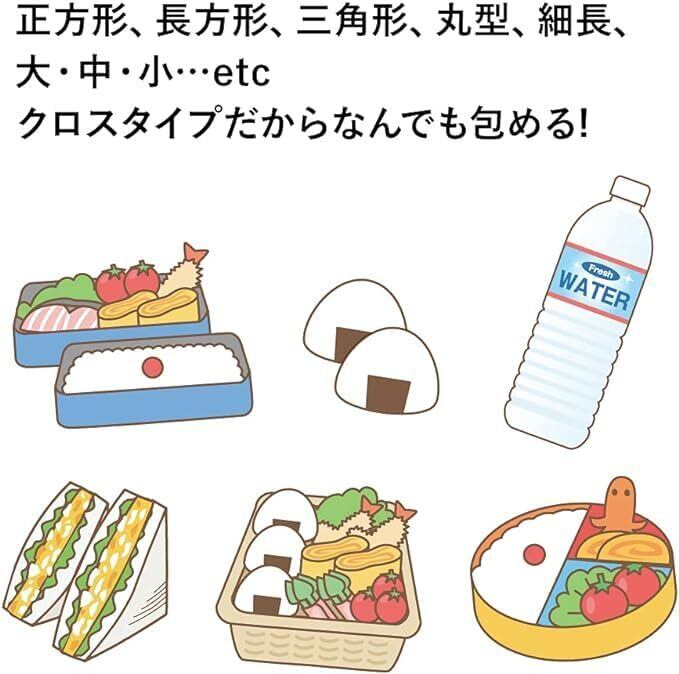 3.【形に合わせて自由自在に包める!】結ばずに包めるので、子供でも包めます。正方形、長方形、三角形、丸型、細長、大・中・小…クロスタイプだからなんでも包める!タテ型のお弁当箱やペットボトル、おにぎり、バナナなど、物のかたちに合わせて包めます。 暑い時期に重宝する約1Lサイズのペットボトルにもぴったりサイズです。